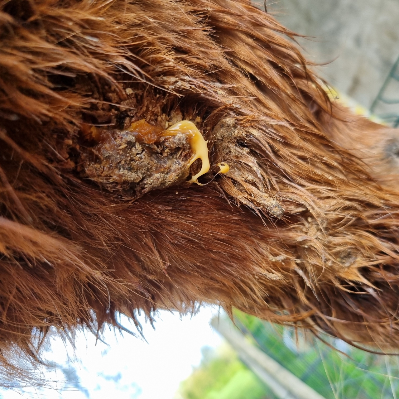 | Dire merci | Bonjour à tous. Merci pour vos messages pleins de bon sens. Tessa, le forum est surtout féminin, mais je suis un homme de 60 ans ![]() Il est clair qu'il n'est en ce moment pas "euthanasiable" car beaucoup de problèmes mais il se bat. Mon bon Véto de 130 km ne fait pas les chevaux, mais selon lui ce serait plus une tumeur qu'un abcés. il a déjà eu 2 protocoles d'antibiotiques qui ont échoué. J'ai fait un prélèvement qui est actuellement en analyse, pour connaître le type de microbe. Je ne peux pas mettre de masque car l'abcès est juste au niveau de la fermeture. Le traitement Cushing, oui on peut tenter. Clairement mon problème c'est l'abcès. Voilà la chose (grosse comme la moitié d'un paquet de cigarettes : ![]() Je fais un shampoing de Douxo pyo puis j'injecte dans l'abcès de la biceptine. Si je ne faisais rien, ce serait pareil ... voilà Bonne journée Basque Message édité le 10/04/24 à 12:55 |