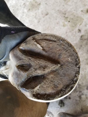 | Dire merci | je vois bien une ligne blanche étirée : une faiblesse de la lamina (élastose est donc fort possible) avec des photos latérales : on pourrait aussi visualiser si les stries (lignes sur la paroi) sont divergentes : cela est aussi un excellent indice de problème métabolique celles ci devraient être parallèles à l'angle de la bande coronaire : ici elles font des vagues. C'est signe de pied pas correctement fonctionnel. tu as déjà une piste d'attaque si je peux dire : une sensibilité sur un pied parfait : tu n'aurais eu "que" les chaussures comme aide Je ne peux pas bien apprécier la concavité sur cette vue mais la sole semble plate : ce qui indique une fort possible semelle fine : tu peux observer ce dessous de pied de 3/4 pour imaginer comment le pied sain doit être dessous. le test de la planche ne servira à rien le fait que ton véto fasse des VA à 1000 balles ne veut pas dire qu'il ait l'habitude qu'on lui demande des radios de parage. je te mets un lien ici si cela te permet de voir plus clair sur ce qu'on veut voir : Lien pour te répondre plus précisément : le dosage insulne + glucose postprandial fourrage (j'insiste sur les 2 choses à demander et les conditions + demander les résultats : ,ne pas se contenter de "elle est positive ou négative " ) quand je dis que cela pourrait ne pas confirmer : elle est jeune et parfois lorsque c'est dans les tout débuts : si elle a fait beaucoup de sport et qu'elle n'avait pas l'estomac plein depuis minimum 1 heure : on peut ne pas le voir, mais dans TON cas : je le ferais : c'est TOUJOURS plus facile de prévenir que guérir Je ne blague pas : même si une fourbure peut n'être que ponctuelle : il y a toujours un avant/après et c'est la grosse merde. Pour les compléments : ce n'est pas une option et tu ne verras pas le changement sur un été : cela doit être donner en continu et la pierre à sel n'est là qu'en extra Pourrais tu peut être préparer des petites rations de cmv que la proprio de la pension peut donner au quotidien ? il faut aussi savoir qu'un cheval privé d'herbe ne reçoit pas de vitamine E et d'acides gras essentiels en suffisance : sur le long terme un telle nutrition cause de sérieuses carences et n'apporte pas ce dont des sabots ont besoin pour être en bonne santé Il ne s'agit pas de donner n'importe quoi non plus, ni des vitamines isolées par ci par là : en effet, le rapport entre ceux ci est très important il existe des CMV bon marché pas trop mal dosés : le minko est parmi les moins cher (moins de 50 centimes par jour) perso j'aime utiliser le vitalbix daily essentiel car il est fait sur une base de graines de lin et cela évite d'en ajouter en plus. les CMV "tout prêts" ont en général prévus pour les chevaux au pré, il faut parfois ajouter ce qui manque mais déjà : si tu pouvais en donner un tout simple + omegas (graines de lin) + sel (5 à 10 grammes de sel de table par jour) : au bout d'une repousse de boîte cornée complète (9 mois sur un jeune cheval ) tu devrais déjà voir une belle différence ! ici l'article nutrition qui pourrait t'être utile à comprendre comment tu peux aider ta jument : si tu veux des captures d'écran de mes traductions : tu peux juste demander je ne sais pas si tu causes angliche : Lien encore un argument de poids (si je peux dire ) au fait de veiller à son métabolisme : presque TOUS les chevaux SME finissent PPID (cushing) avec l'âge et c'est encore plus la merde ! une bonne nouvelle : le SME est réversible <3 |