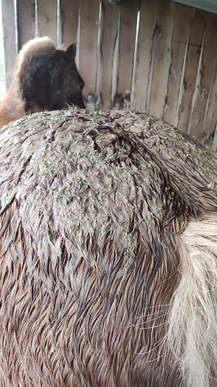 | Dire merci | A la maison, j'ai trois chevaux, ou plutôt deux juments et un sanglier ![]() En effet, saison oblige, ils sont tous un peu boueux. Mais mon hongre, c'est une catastrophe, ce n'est plus un cheval mais une croûte de boue ambulante. Je ne sais pas si c'est lié à la texture de son poil ou à son choix des zones de roulage, mais la couche de boue est si épaisse qu'elle ne sèche jamais complètement (faut dire qu'il pleut tous les jours) et à l'étrille américaine j'ai plus l'impression d'étaler de la boue que de faire quelque chose d'utile J'ai un peu souci que le rôle isolant du poil en prenne un coup... Vous avez une astuce hors douche (impossible par ces températures) ou couverture pour limiter les dégâts ? |