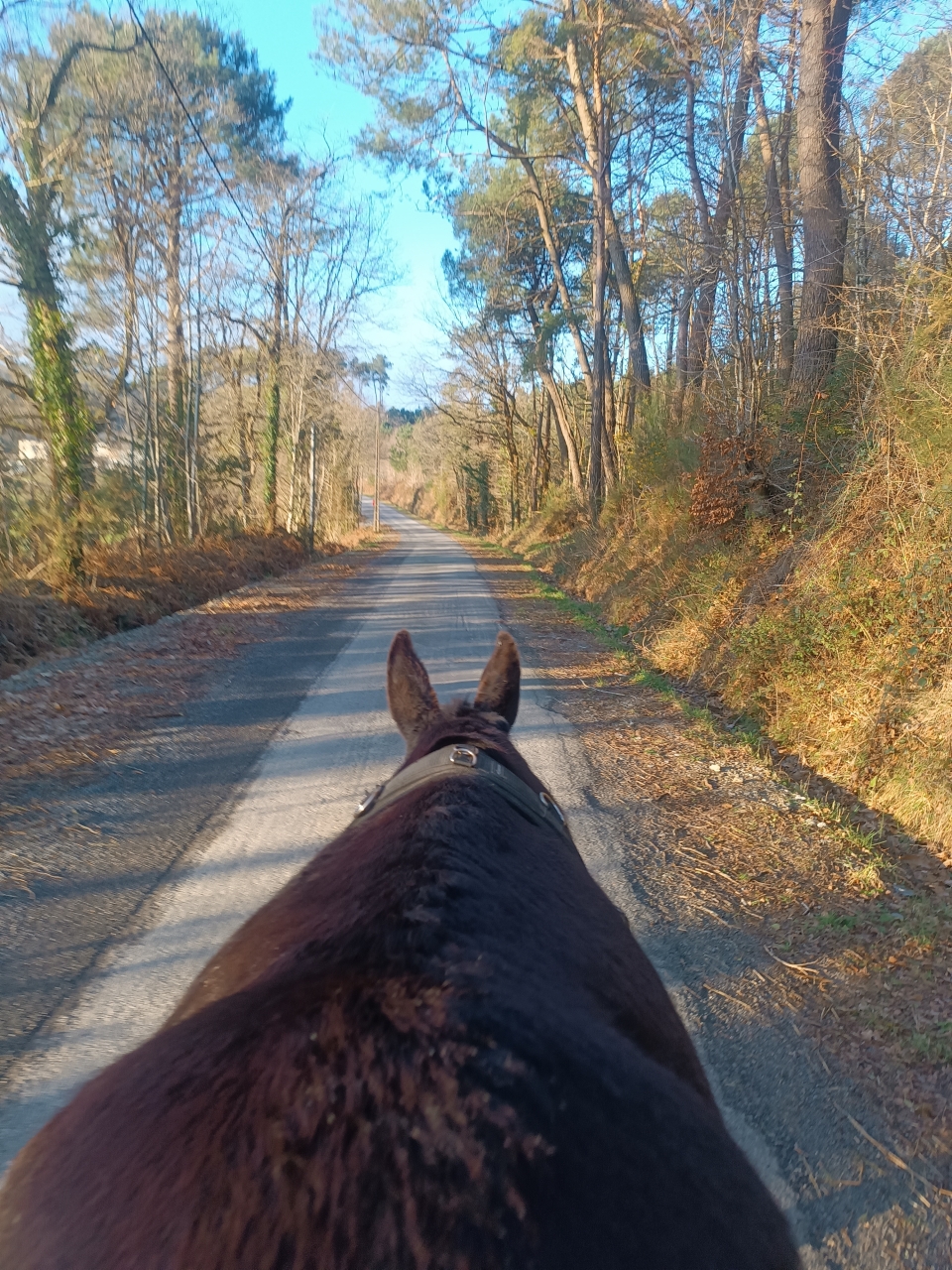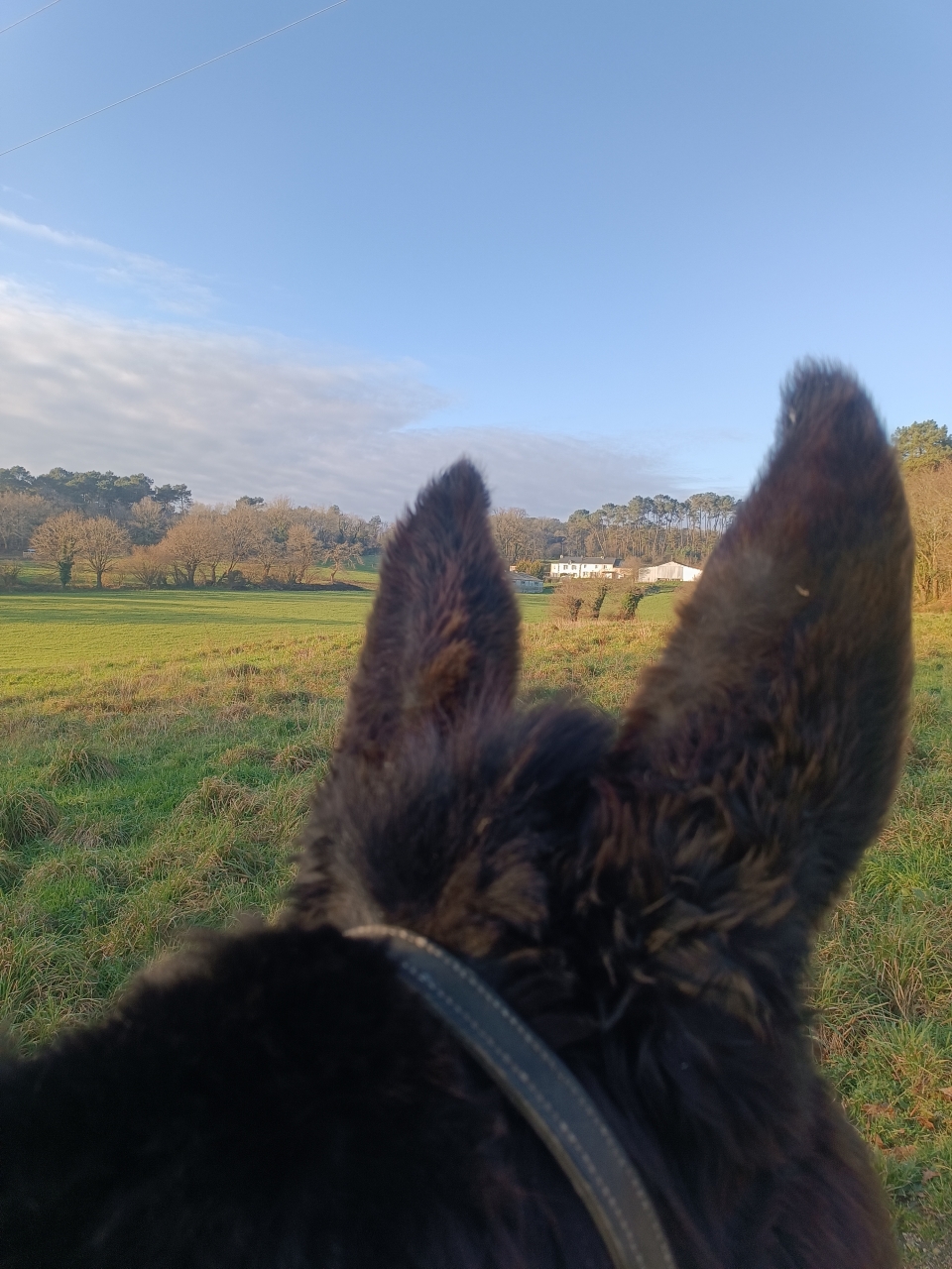 | Dire merci | Allez, parce qu'il faut partager aussi les bonnes nouvelles ! Aujourd'hui, nous avons eu du soleil ! C'est déjà une excellente nouvelle en soi J'ai tenté un tour en longues rênes sur licol avec mon âne. Révision des bases avant de partir car n'en a pas fait depuis... un an au moins ? Impeccable, gauche, droite, arrêt (son indication préférée ), et même en arrière, il se souvient de tout. Un peu mou au départ, il a fini par s'enclencher et on est finalement partis 1h15, il avait un bon pas, je l'ai senti heureux et détendu Chemins, route, imperturbable Quel dommage qu'il ne soit pas en bonne santé, j'aurais pu faire le tour du monde les yeux fermés avec lui ![]() La maison en arrière-plan ![]() Attendu avec impatience par son coloc ! ![]() |