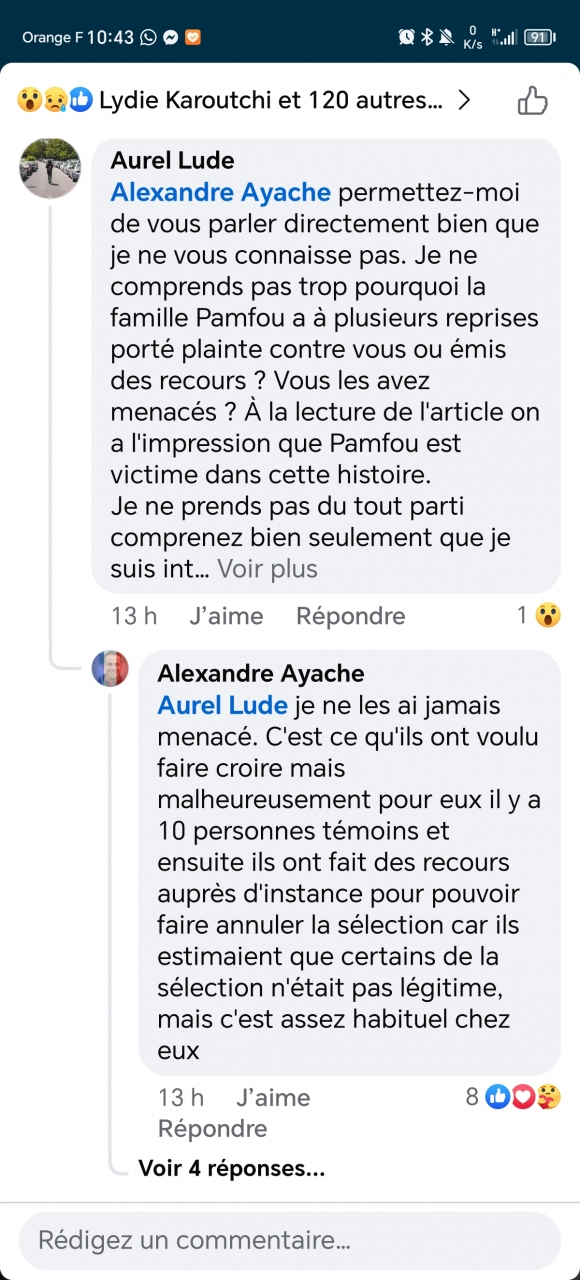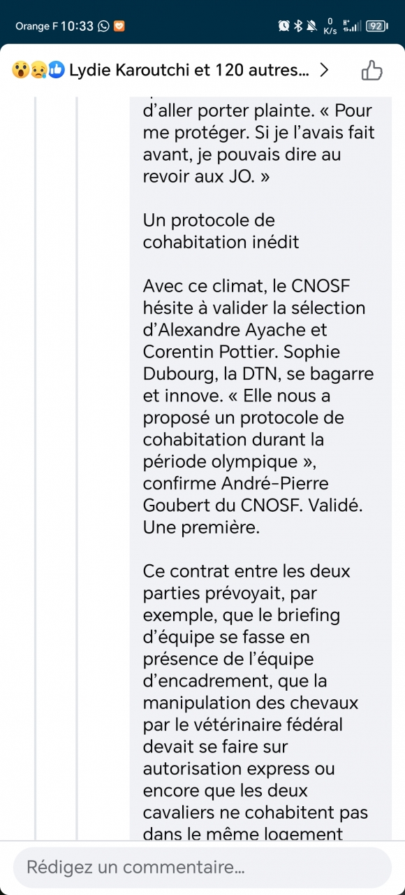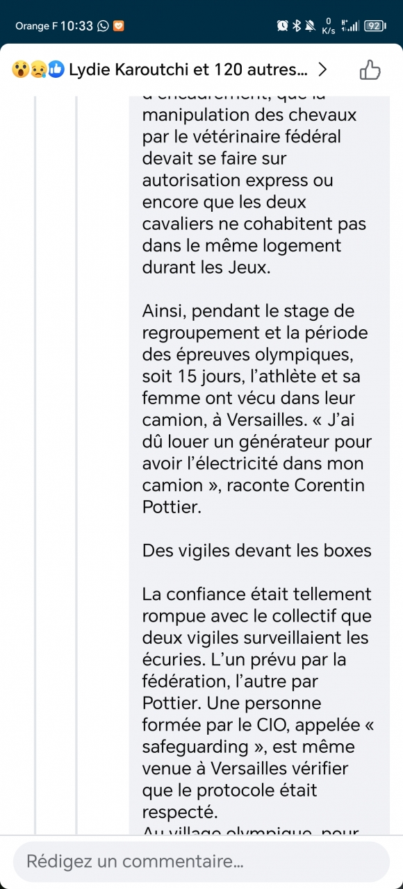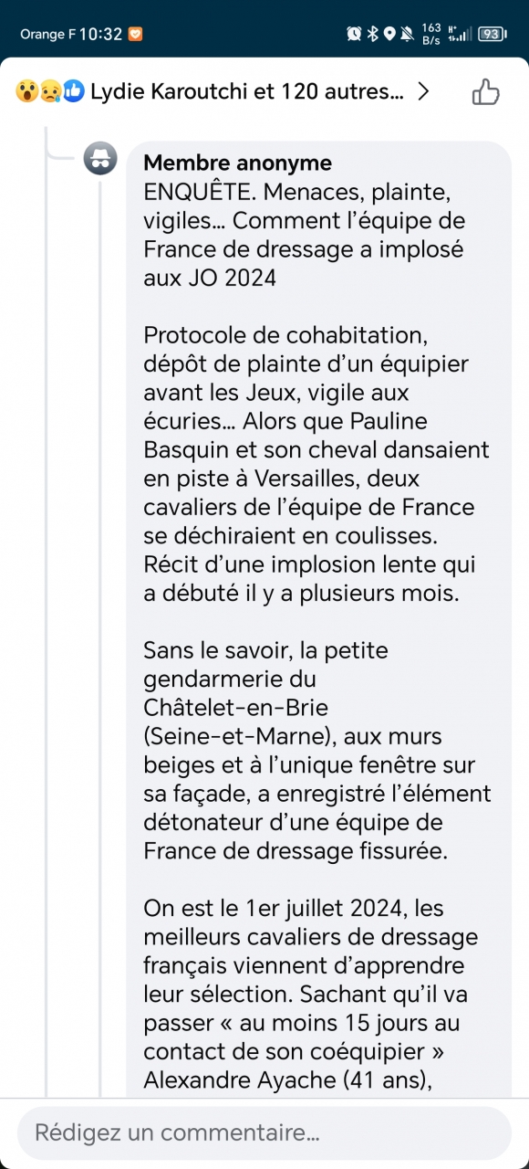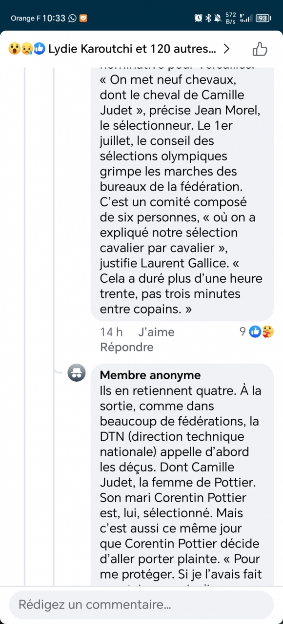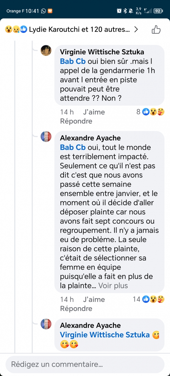 | Dire merci | Pamfou est connu pour être assez procéduriers... mais ils perdent souvent Il faut les voir quand ils débarquent à un concours... tous sortis de la cuisse de Jupiter. Ayache je l'ai vu une fois sur un concours et pour le coup il était plutôt très discret (contrairement à ses coups de gueules sur les réseaux )En tout cas ça donne pas une belle image de notre sport (déjà que le dressage n'a plus vraiment la cote ) |