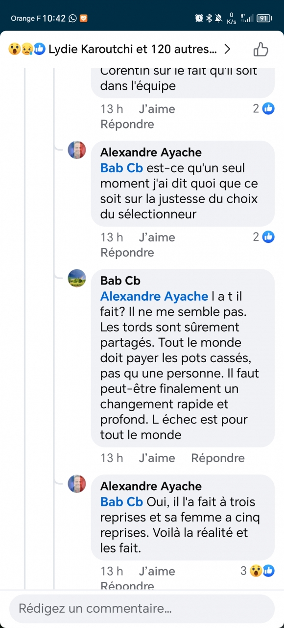 | Dire merci | En vrai Ayache je le suis depuis des années (alors que j'étais loin d'imaginer que c'était Un gars de ce niveau) sans qu'il n'y ait jamais eu un scandale, un coup de gueule ou autre. Sur Facebook j'ai pas du tout trouvé que c'était un gars qui se la racontait, limite il mettait plus en avant sa femme que lui même... Je veux bien croire que le type soit du genre sanguin, mais pour le coup j'en avais pas du tout une image de fauteur de troubles... |