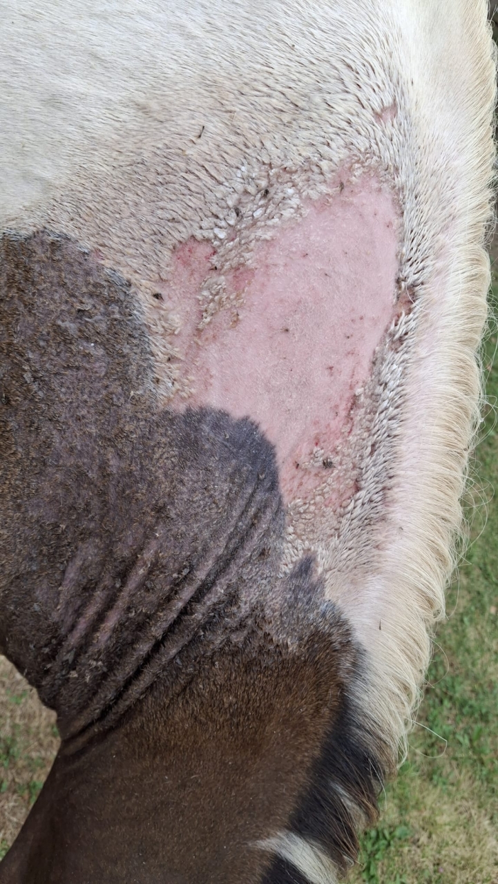 | Dire merci | Je plussoie le protocole de K.Zel et j'ajoute que pour mon poney crème, peau bien rose, ce qui fonctionne le mieux c'est liniment le soir et crème solaire pour enfants (celles pour équidé aucun résultat) mais idéalement 1x matin 1x midi/début d'après midi... en couche très épaisse |