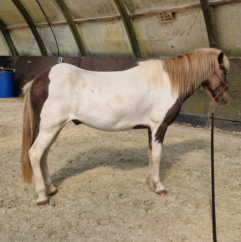 | Dire merci | Bonjour à tous.tes, J'ai besoin de partage d'expérience (avant tout). Et potentiellement d'avis sur mon Islandais. Le contexte: Né en mai 2020 en Islande Castré début décembre 2023 Importé en Europe: fin décembre 2023 Arrivé chez moi début avril 2024 Acheté sur vidéo / photos via une éleveuse. A son arrivée: Pas très bon état, il lui manquait quelques kilos Il a beaucoup dormi et fait des siestes. Vermifuge Début de vaccination + prise de sang (Lymphocyte un peu élevé = drainage) La véto le trouve un peu hyperlaxe et qu'il manque de tonus musculaire. Notamment au niveau des membres Analyse de crins pour voir si carence éventuelle (Via AJC Nature): Pas de carence mais certains taux + élevé que la norme (la norme n'étant sans doute pas fait pour les chevaux vivants en Islande). Dentiste: Quelques surdents sinon OK: petit retard par rapport à son âge Parage Sa ligne de dos ne me semble pas OK Je fait venir une Ostéo qui me confirme cela, mais lie ça aussi à tous les changements qu'il vient d'avoir. Rien de particulier sinon. Je commence tranquillement la manipulation, concrètement il a passé tout le début de sa vie au pré en troupeau Une vie de poulain! Il a tout à découvrir.Je précise que c'est un 5 allures (a priori). Je ne l'ai encore jamais vu trotter. Il a un tölt très amblé. Début du "travail /éducation" - Je continue à me questionner sur son dos. - Manque de mobilité au niveau des postérieurs, notamment du droit (pour passer sous lui). En même temps c'est encore un jeune... - Souvent au repos à l'arrière main - Il a tendance à trainer un peu des postérieurs (ça râpe sur le macadam) - Je fais venir la véto pour des radios: Dos + postérieurs: elle aussi est interpellée par son dos. Les radios indiquent que tout est OK, pas d'anciennes lésions / blessures ou autres qui auraient mal cicatrisées. Juste une conformation différentes (comme un homme qui aurait une scoliose) - J'ai des photos de lui bébé: tout semble OK, idem ses parents. - Autre Ostéo (qui manipule déjà des islandais): Jamais vu un dos comme ça non plus, quelques blocages au niveau du bassin. Hyperlaxe + manque de tonus musculaire. Elle me propose des exos (travailler en extension d'encolure, reculer tête en bas, mobilisation des hanches + flexions / étirements à l'aide de friandises. Et aussi travailler sur des barres au sol pour l'aider dans sa proprioception. + lever ses pieds. Suite aux radios + dernière ostéo: pas de contre indication pour commencer le débourrage ( mais dans le bon sens) et pour l'aider à continuer à développer sa musculature. Il n'a aucune douleur. Je vous met les photos dans le message suivant. Avez-vous déjà croisé / connu des chevaux avec un dos comme cela ? Des jeunes chevaux ? Comment ça a évoluer ? Les islandais sont des chevaux plutôt "tardifs". Bliki l'est d'autant plus sans doute avec tous ces changements. Merci de m'avoir lu |