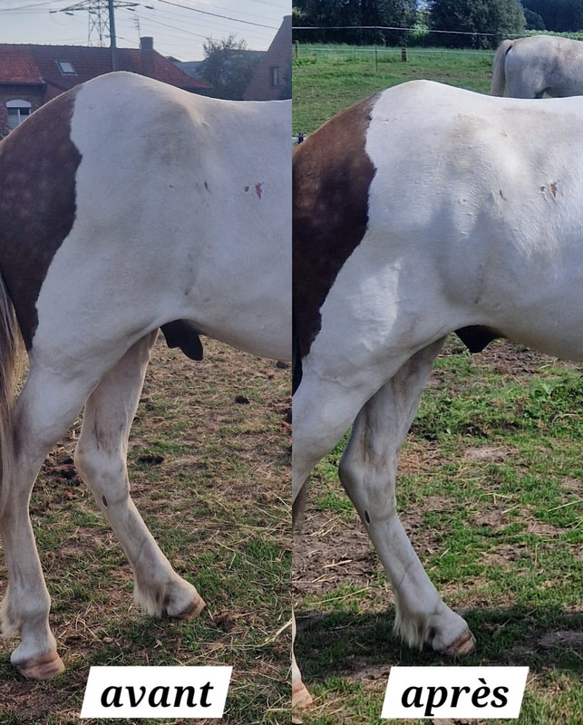 | Dire merci | Poulain![]() Avant son importation: ![]() Quelques semaines après son arrivée (mai 2024) ![]() ![]() Juin: ![]() Après le passage de la seconde ostéo ![]() Août: ![]() |