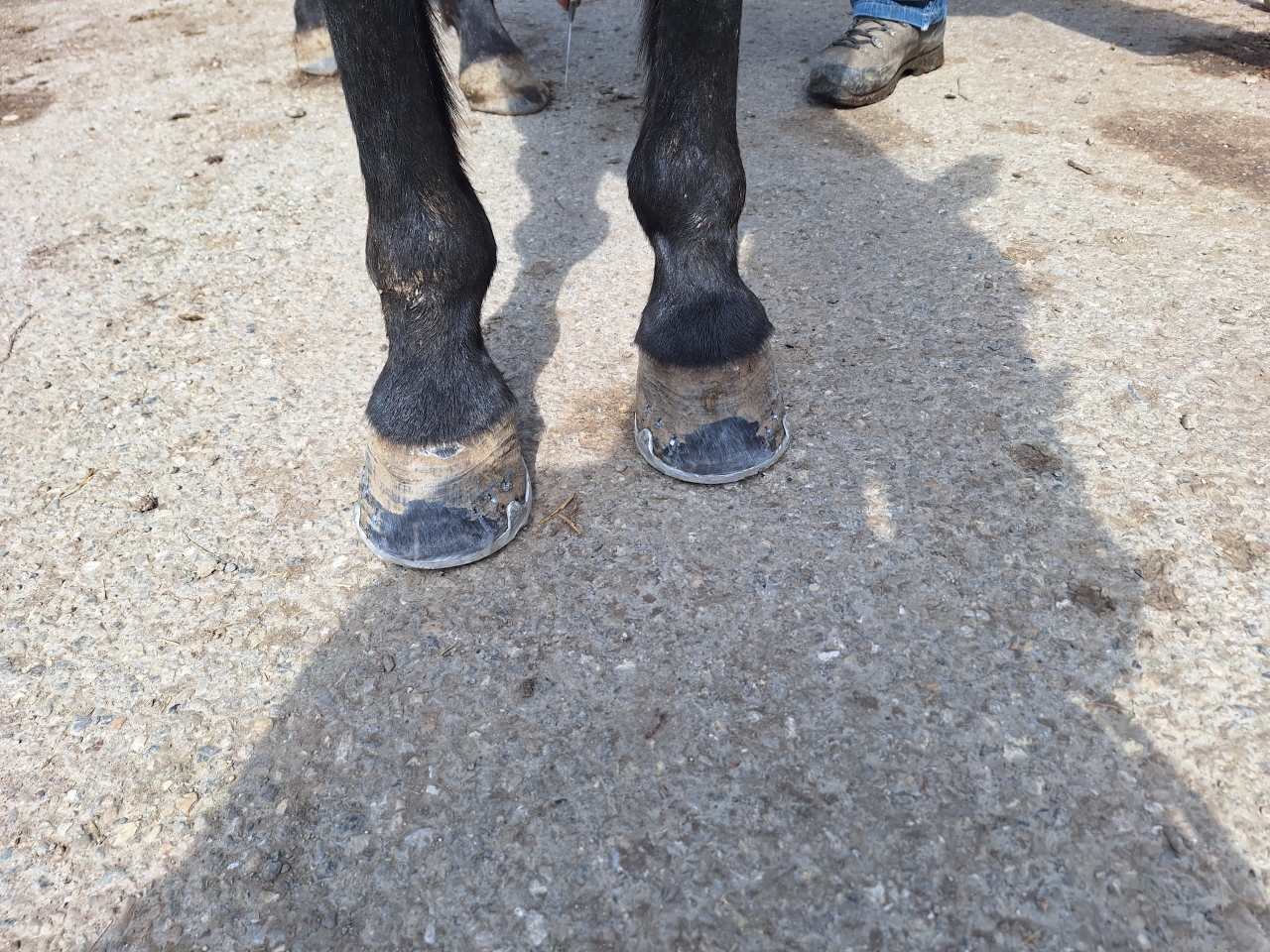 | Dire merci | Non c'est un autre maréchal-ferrant. Depuis le dernier ferrage l'état des antérieurs s'est amélioré (validité par le véto). Celui dont tu parles a fait du mauvais travail sur Cody. Normalement ces fers permettent d'améliorer la circulation et donc de permettre la pousse de la sole et de la corne. |