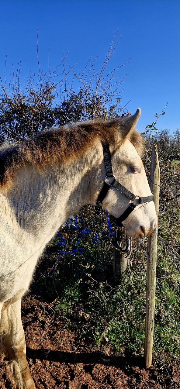 | Dire merci | J'ai cherché sans rien trouver, j'espère ne pas faire de doublon ! Si c'est le cas peut-être qu'un modo passera par là... J'ouvre le bal avec ma petite Calinka du Belier (la lettre est différente car elle est inscrite dans un studbook belge), pouliche de robe champagne ambre (certainement porteuse du crème) née le 2 Juin du mariage entre Milady du Belier (Arabo Frison PP) et Boogie Blue (etalon de type aztèque). Elle est vive, curieuse, espiègle, pas farouche du tout et elle a déjà un petit caractère biennnn trempé Pour le moment on "travaille" le fait d'être manipulé de partout sachant que la tête est encore une zone sensible, on découvre le licol au sol et sur l'encolure et on profite a gogo des gratouilles et du brossage ! J'espère que ce post sera l'occasion d'échanger nos aventures, nos déboires, nos doutes, nos moments de gloire alors a vous avec vos petits P (qui deviendront grands) ! ![]() ![]() ![]() ![]() |