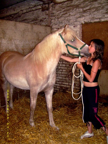 Déconnecté | ahhh super aude13 ! elle est un peu ronde a mon goût mais TRES jolie ! c'est super sa en plus que tu puises direct la monté au licol ! tu es partie comme sa aussi en balade? quelle âge a t'elle ??? suis contente pour toi ! vous formez un beau couple ! elle a un chouette popotin en tout cas ! |