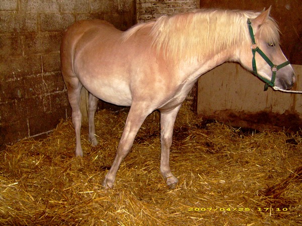 | Dire merci | Bonjour, (je transfert mon post ici dsl) Une amie vient d'acheter ce poulain haflinger encore entier qui aura 1 ans le 30 mai. Il s'agit de Star Abendrot par Abendrot et Gracieuse de Lude par Arascon Nobisco. Connaissez vous ses origines? Que pensez-vous de son modele? Je ne connais pas sa taille mais sr la photo mon amie mesure 1m58 environ à 14ans et le père du poulain toise 1m54. Pensez vous qu'il va encore bcp grandir? Je laisse place aux photos. Merci de me renseigner. ![]() ![]() ![]() Pour finir, à combien estimeriez vous ce cheval? |