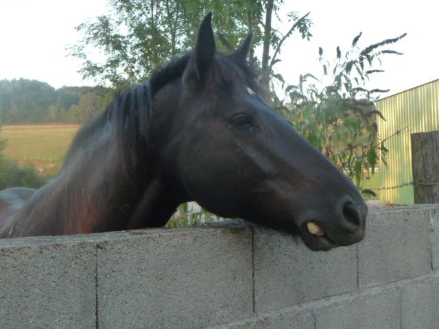 | Dire merci | Maintenant, les 2 autres : Tout d'abord Sultan, 3ans, arrivé dans "le champ de Ninou" il y a environ un mois. Il est né chez Patrick, castré depuis peu, et jamais séparé de son copain entier également de sa naissance à aujourd'hui. Il faut qu'il apprenne la vie... Il a semé un peu la zizanie dans notre "groupe des 4", il voulait faire le chef sauf que c'est Oural le chef... Au bout d'un mois tout n'est pas encore calme. On dirait qu'il y a 2troupeaux en un. Je m'explique : les 4 restent ensemble avec Oural comme chef et de l'autre coté il y a Sultan avec Ebène, avec Sultan comme chef... Un peu compliqué mais ils restent tous les 6 à proximité. Ca serait bien qu'ils se calment car ils ont des blessures partout, au bout d'un mois c'est long leur guerre.. C'est égalemet lui l'auteur de la fracture de ma cheville, il m'a "sauté dessus"... Enfin bref... ![]() ![]() ![]() Sur la dernière photo vous pouvez voir Ebène, qui doit avoir environ 6/7 ans. Et non ce n'est pas un mérens! lol. C'est une jument qui est en pension dans notre champ depuis 2ans environ. Elle s'habituait bien au groupe mais depuis que Sultan est là elle reste avec lui. Elle est un peu bizarre lol, un peu fouine à chercher les problème la ou il n'y en a pas, à créer des conflits entre les 6. C'est je t'aime moi non plus avec Sultan ils sont collés tout le temps mais des fois sans qu'on comprenne rien, ils "s'enguelent" pour rien...ils essayent de trouver leur hiérarchie à 2 j'ai l'impression... ![]() Donc voila, 6proprio de chevaux réunis mais il n'y a que les mérens ou "demi mérens" qui sont montés, Ebène ne l'est pas ou très peu, elle ne part jamais en ballade avec nous en tout cas. Voila la présentation de la petite famille, en gros... |
