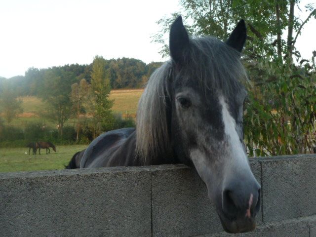 DéconnectéDire merci | Tianma c'est super futé le coup de la douche ! Fallait y penser ! Ninou ça fait un sacré troupeau tous ces mérens (2 demi-merens = 1 merens entier ? lol) hier j'ai débardé des troncs pour faire des barres d'obstacles, je les ai pris dans le bois du grand pré, heureusement Max et Ohana étaient occupés à surveiller FRaise qui était montée par les enfants... Pendant ce temps ils ne m'ont pas enquiquinée tandis que j'ouvrais les portes et faisais les manoeuvres (c'est hyper compliqué de sortir d'un pré avec un cheval tirant 4m de bois n'empêche ! ) Lotus a été bien sage ! Ce matin j'ai un peu discuté avec les proprios d'Ohana... La jeune flle courait éblouie vers sa jument ! Comme la petite maison dans la prairie ! c'était mignon ! lol ensuite j'ai fait une courte balade avec Lotus principalement au trot et galop, la dernière des vacances ensuite râpé un peu les pieds, puis cueillette des mûres et sureaux, je lui ai mis les sacoches sur le dos, attachées sous le ventre, et hop il broutait tandis que je ramassais... en revenant, avec le déhanchement de la marche, les sacs reculaient de plus en plus, presque sur la croupe ! lol enfin je pense que Lotus a bien aimé cet intermède gastronomique,a vec des petites pommes sauvages, des mûres, du sureau, et comme j'avais oublié son picotin (honte à moi ) je lui ai donné son sel à la main ! Il adore ! Bon je vais aller faire des confitures ! je me demandais aussi si la patronne de Ohana ne voudrait pas monter Lotus de temps en temps, au lieu de suivre sa fille à pied quand celle-ci se balade à cheval... Ca le sortirait le Gros ! à réfléchir ! ![]() |