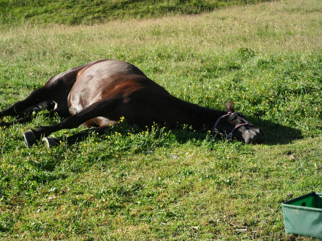 | Dire merci | ouais, une sirène échouée, avec son gros bidon, ça faisait un peu ça! (snif : non malheureusement, pas de photos. les chevaux sont dans un pré à 10minutes de marche du parking et j'avais laissé mon appareil dans la voiture ) |