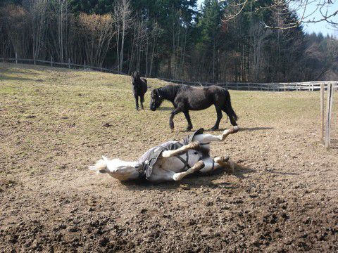 | Dire merci | je crois que Norie a vu juste, parce que sinon quelle position étrange pour se reposer!![]() Les autres n'ont pas l'air d'avoir la vie trop dure non plus Pitichat sympa le tapis! la couleur est très jolie! Moi aussi j'ai enfin pu prendre du bon temps avec mon poney, samedi temps froid et sec mais beau : idéal pour une balade!Je crois que pour une fois on etait tous les 2 contents, aux memes moments |