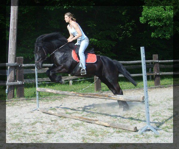 Déconnecté | Ben j'étais passer déjà deux fois à pied et une fois monté devant cet endroit et toujours les chiens qui aboient et les vaches d'un cote elle soufflait un peu mais rien d'autre, et la j'ai eu droit a un départ au galop je sais pas pourquoi et après l'écart en crabe quoi, quand suis aller lui remontrer des vaches plus tard, elle était sur l'oeil mais pas stresser ![]() Raaaaa j'espère que ça va pas ruiner l'idée que je veux faire dl'attelage, j'ai déjà la grande qui est la reine des écarts veut pas elle en plus... En fin bon, la photo au saut elle saut trop bizarre devant elle faisait comme pour sauter un truc haut et derrière elle enjambait pas trop la classe ça xD |