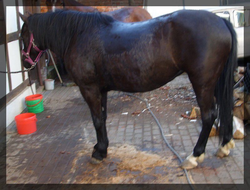 DéconnectéDire merci | heureusement que nous avons de belles photos d'un mérens qui travaille bien pour nous montrer la beauté de cette bête. et de bonnes nouvelles de mérens en plaine santé !! et vous avez raison, la carence alimentaire ne se transmet pas. ce n'est pas parce que les parents ont été carencés que le poulain et plus tard le cheval adulte sera carencé. ce qui se transmet, c'est la croissance anarchique des os, causée par la carence alimentaire des ancêtres. pour reprendre les propos de Norie, il existe des éleveurs qui complémentent très mal leurs chevaux en hiver (et là, il n'y a pas que les mérens de concernés) les raisons sont multiples : le manque de moyens (les compléments, ça coûtent chers), l'incompétence et la négligence. on retrouve les problèmes de processus palmaires chez les chevaux de trait du fait : - soit du poids de ces chevaux par rapport à leurs pieds (fins pour porter de grosse masse) et dans ce cas, on doit certainement en retrouver énormément chez les races qui ont été alourdis pour la boucherie. - soit à cause de carence alimentaire car les éleveurs de chevaux de trait ne dépensaient pas beaucoup pour nourrir leur bêtes (pauvreté des éleveurs, rareté des matières,... plusieurs causes possibles) Une des raisons pour lesquelles vos chevaux ne sont pas concernés seraient peut être (à prendre avec des pincettes) le fait qu'il s'agisse de chevaux de sport grands et fins? (mais non SDE, Lotus n'est pas un mérens de sport et il est très bien comme ça )JE VAIS FAIRE UNE THESE ! MAISON ALFORT, J'ARRIVE !! |