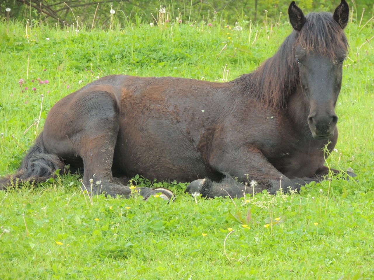 : le mérens s'est reposé au pré sous la pluie !