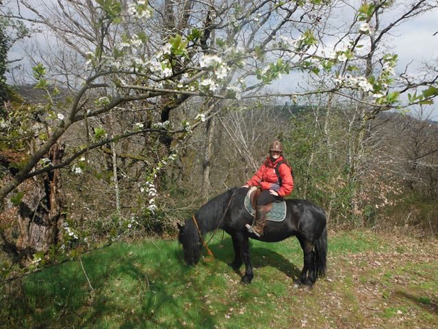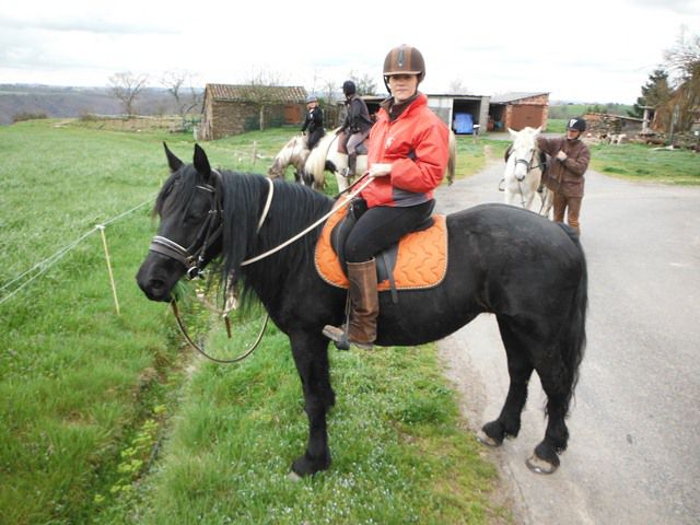 | Dire merci | Salut, Votre petite sortie à la mer avec tous ces beaux mérens m'a donné envie de partager avec vous nos sorties tarnaises, pourquoi pas l'idée d'agrandir le cercle des Mérens ! Je vous présente donc Lusis, mérens de 14 ans, elle est arrivée à 9 mois à la maison après 6 longs mois d'attente.... ! ![]() Cette année je l'ai mise au travail dans une ferme équestre non loin de chez ma mère pour qu'elle travaille un peu plus et que je puisse en profiter les we quand je viens (je suis à Toulouse et pour l'instant pas encore la possibilité de la récupérer près de moi). Du coup, je reprends des cours le samedi matin à la ferme et je profite des extérieurs le dimanche. A l'occasion du printemps, nous avons organisé une sortie jusqu'au bord du Tarn où nous avons pique-niqué et mis nos chevaux à l'eau. Nous étions 10 dont 3 mérens. ![]() ![]() ![]() Avant que le mauvais temps revienne nous avons eu le temps avec mon ami de partir en amoureux dans nos vallées le long des ruisseaux et en haut de nos petites montagnes. ![]() Lors de notre petite pose casse-croute, Lusis et Manon ![]() Pas mérens mais tellement adorable, Manon avec mon ami. Manon est la nouvelle compagne de pré de Lusis depuis que j'ai perdu mon cheval fin février. Si j'ai l'occasion j'adorerai pouvoir l'acheter car elle est vraiment top et s'entend à merveille avec Lusis.... ![]() Je fais depuis peu partie d'une association "Nos vieux chemins" qui oeuvre pour réouvrir des chemins communaux afin que randonneurs à pieds, à cheval et en VTT puissent de nouveaux se balader sans être obligé de mettre les pieds sur le bitume.... Nous organisons à cette occasion un journée le 26 mai prochain au cours de laquelle nous prévoyons une boucle à cheval pour faire découvrir nos chemins.... si ça vous tente, je serais ravie de vous accueillir sur une journée ou le we entier... n'hésitez pas à me contacter en MP. Je lis régulièrement vos posts, j'ai bien hâte de pouvoir emmener Lusis à la mer, ce serait une première pour nous deux ..... En attendant nous participons à notre premier TREC le 23 juin prochain à St Beauzile (CE de la Grésigne).... J'espère que je n'ai pas été trop longue ![]() Au plaisir de vous lire, à bientôt ![]() |