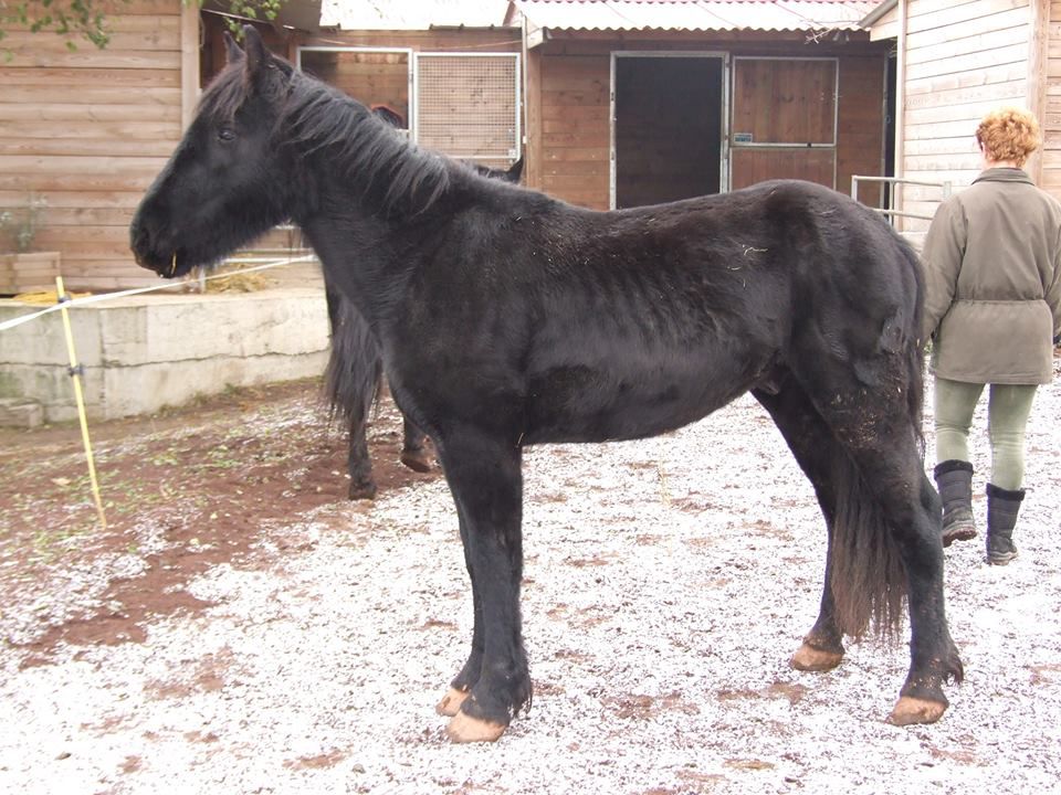 | Dire merci | @Norie, merci pour mes photos ! Pour la crinière, sa propriétaire gère une écurie, donc je ne pense pas qu'elle ait le temps... En plus je suis sûre que ses copains de jeux prendront un malin plaisir à prendre entre leurs dent les tresses ahah.Sinon pour de ce qui en est de Raine, ce fut un sauvetage, le même que pour Bilbo (décembre 2013) ! Ils sont arrivés ensemble, elle, pleine de Bilbo (saillie non déclarée). Entre décembre 2013 & mai 2014 (où elle a mis bas), elle avait bien repris, mais depuis que le petit Ebène est né, elle lui a tout donné, et à perdu beaucoup d'état ! Sa proprio voulait attendre un peu avant de sevrer Ebène mais finalement, il a été sevré la semaine dernière ! Raine en décembre 2013 ![]() Février 2014 ![]() Avril 2014, elle avait vraiment bien repris et était superbe! Le poulinou approchait aussi... ![]() ![]() Mai 2014, avec Ebène ![]() ![]() Juin 2014 (1 mois après le poulinage) ![]() je n'arrive plus à télécharger les photos suivantes donc je m'arrête là ! Mais dès le mois de juin elle a perdu pas mal d'état... |