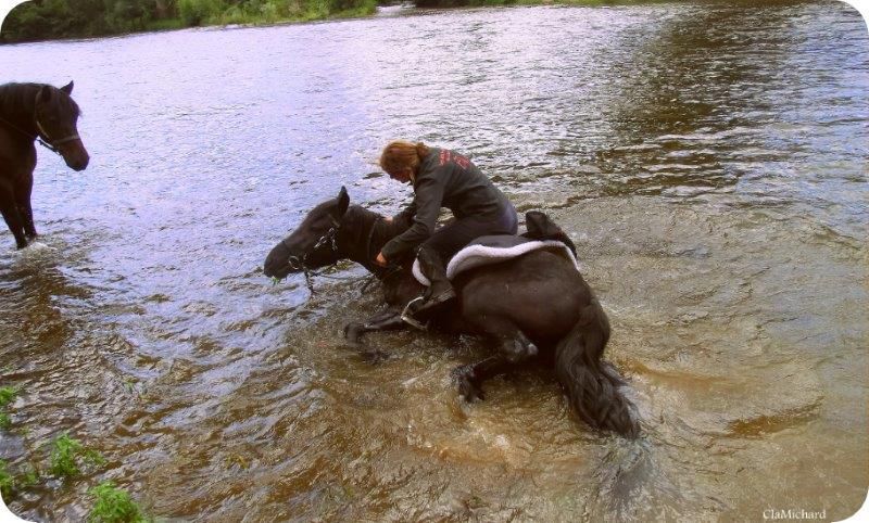 | Dire merci | En avril je m'amuse à comparer deux photos, prises à 5 mois d'intervalle, et je n'en reviens pas ! Quel changement.. (fin novembre) ![]() (fin avril) ![]() Après le label, il est un peu au repos. Ensuite je l'ai monté une fois par semaine en cours. Notre deuxième séance d'obstacle, pas fameuse puisque Bilbo s?emmêle les pinceaux et nous tombons tous les deux! Heureusement, plus de peur que de mal, quelques égratignures ! ![]() Sur l'obstacle où nous tombons ![]() Mais on se remet en selle pour ne pas rester là dessus ![]() Même si Bilbo est vexé et égratigné... ![]() Une semaine après, (fin mai) il fera un petit concours de cso, juste pour son expérience à lui et pour le mettre dans une autre situation. Et nous n'avons pas ressauté depuis notre chute, donc j?appréhende un peu! Mais tout se passe bien! On est certes éliminé, à cause de la direction, mais ce fut une très bonne expérience... Il s'est vraiment bien comporté, et c'était ça le plus important ! La performance sportive était sans importance, on était hors concours ! Je venais sur les obstacles au galop et il en a profiter pour dérober 3 fois ! ![]() ![]() ![]() ![]() ![]() ![]() Fin mai, ma prof (sa propriétaire) le prend sur un entraînement de TREC (PTV) ! ![]() ![]() ![]() Moi je continue les petites balades, on sort seul, il est très sage ! ![]() On refait un petit concours en juin, on aborde les obstacles au trot, on s'en sort juste avec 4 points (une dérobade sur le dernier!). Nous sommes très contents! ![]() ![]() ![]() Pour la fête du club, on fait un carrousel avec 6 mérens (deux sont coupés) ![]() En juillet, on fait 6h30 de route pour aller à Villars-de-Lans, à un concours d'élevage de mérens ! C'était le concours le plus proche de chez nous (on est en Auvergne). Bilbo est jugé au modèle, et nous déroulons aussi une reprise de dressage ! On termine 1er ! ![]() ![]() ![]() ![]() Durant l'été c'est plus calme ! J'ai du le monter 2 fois en carrière, le reste du temps il était au pré ou faisait une balade après sa propriétaire ! Ah si tiens! en regardant mes photos, je viens de me rappeler qu'il a aussi fait 2 petites séances découvertes de cross. Car pour être agréer étalon, il doit enchaîner un parcours de cross (en plus d'être longé et de dérouler une reprise de dressage monté et attelé) ![]() ![]() ![]() Message édité le 30/10/14 à 11:27 |