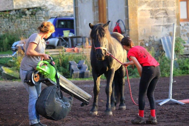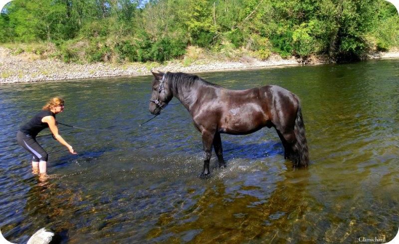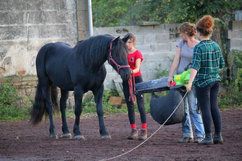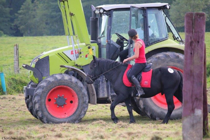 | Dire merci | Merci Peyral! Et j'espère que cette aventure va continuer aussi bien ! La première session pour agréer étalon se déroulait pendant la semaine de Bouan, en août, à la Bastide-de-Sérou! Mais sa propriétaire voulait le présenter à la deuxième session en octobre (a t-elle eu lieu d'ailleurs?) ! Mais pour différentes raisons (organisation et aussi car elle ne sentait pas que Bilbo était prêt), elle a décidé de le présenté pendant l'année de ses 4 ans, en 2015 ! Le travail de débourrage à l'attelage avait commencé, avec l'aide d'un pro... Ahah non, là Bilbo faisait maître d'école à la petite fille de sa propriétaire ! ![]() Sa propriétaire l'a monté un petit peu, courant août, pour le préparer petit à petit à Bouan l'année prochaine ! ![]() ![]() ![]() Lors d'une randonnée, Bilbo découvre l'eau ! ![]() Le professionnel qui a commencé le débourrage à l'attelage a auparavant monté Bilbo en dressage (je floute sa tête car je n'ai pas d'autorisation) ![]() ![]() ![]() En septembre, nous n'avions pas perdu à l'esprit de le présenter à la finale régionale du label loisir à Lapalisse (03), on s'est donc préparé... ![]() ![]() ![]() Le 28 septembre nous voilà au label loisir... Bilbo ressort encore Elite loisir, et est choisi comme représentant de la région à Equita'Lyon !!!! On est vraiment super contentes de lui ! Il a été parfait ! ![]() ![]() ![]() ![]() ![]() ![]() ![]() ![]() ![]() Après cela, il a fait quelques balades, et a vu l'ostéo qui lui a décoincé quelques trucs ! Il est au repose et se prépare donc pour Equita'Lyon ! Il participera donc au Trophée des Elites ce samedi 1er Novembre ! N'hésitez pas à venir nous voir... On ne sait vraiment pas comment il va réagir car c'est la première fois qu'il sera en indoor, avec en plus beaucoup de monde autour ! On espère que ce sera encore une fois une expérience positive ! ![]() ![]() La semaine dernière, on lui a fait découvrir le souffleur de feuille ! Il n'a pas peur du bruit, ni du souffle sur sa tête, mais par contre sur les jambes, il accepte en serrant très fort les fesses ! ![]() ![]() ![]() Il a aussi rencontré un Dauphin... ça fait peur hein?! ![]() Et voilà, pour finir, quelques photos d'avant hier ! Trop dur la vie ! ![]() ![]() ![]() A bientôt, après Lyon ! Message édité le 30/10/14 à 12:16 |