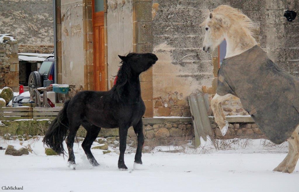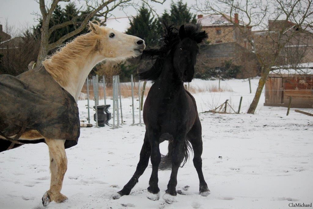 | Dire merci | Bonne année à vous et merci pour Bilbo ! En ce moment, il fait quelques balades de temps en temps, rien de plus. Et ça y est, il a pris 4 ans ! Sa propriétaire a pleins d'objectifs cette année, faire des stages divers et variés (mais faut les trouver...), des balades, au moins un concours en dressage/cso/endurance, le débourrer à l'attelage pour qu'il soit prêt pour Bouan en août ! Pour illustrer, quelques photos Fin Novembre ![]() ![]() Fin décembre ![]() ![]() ![]() ![]() ![]() ![]() ![]() ![]() ![]() et son fils, né en mai 2014 ! ![]() |