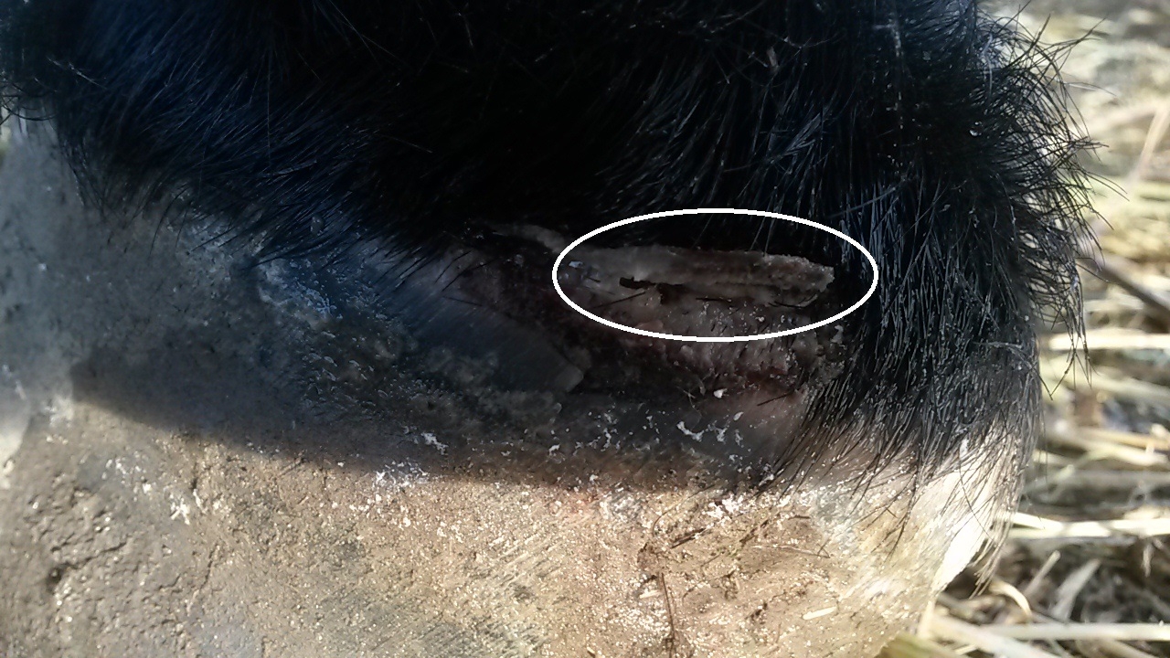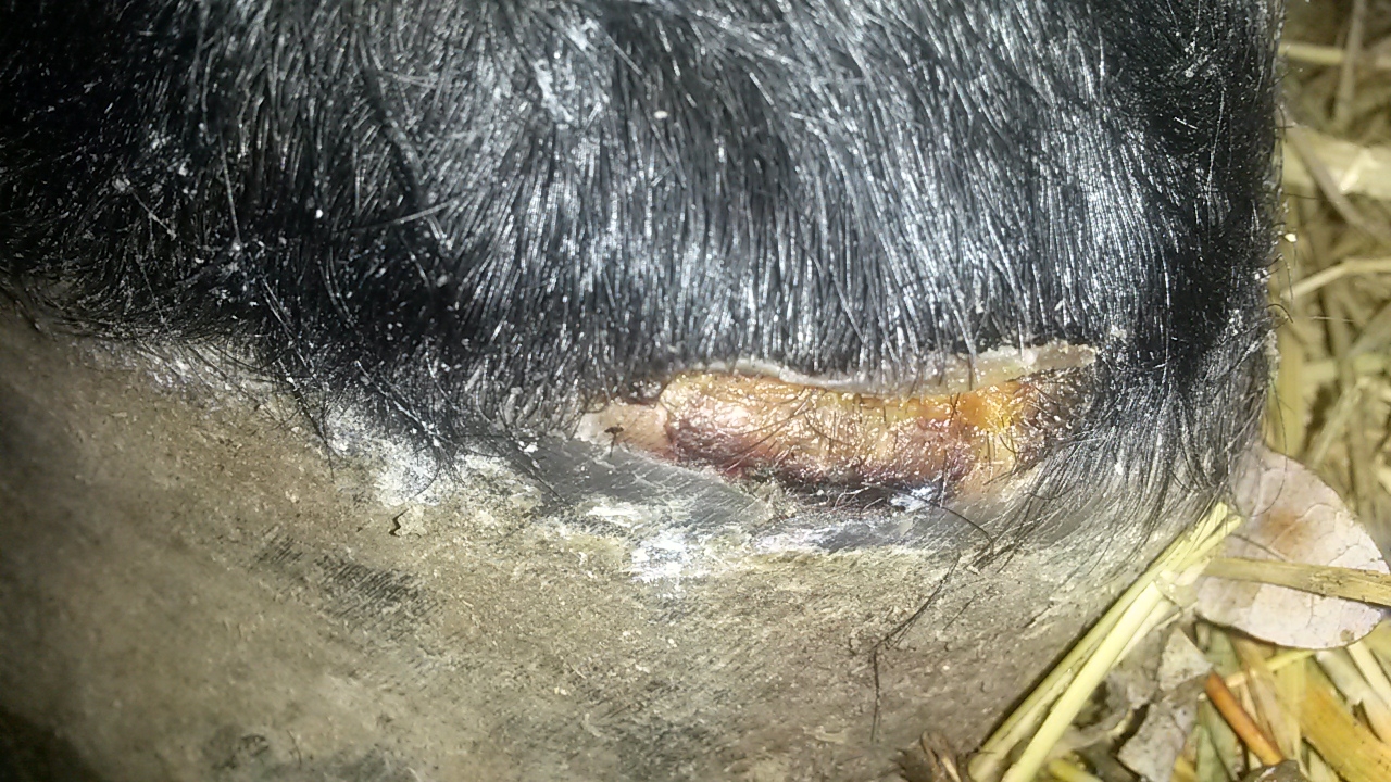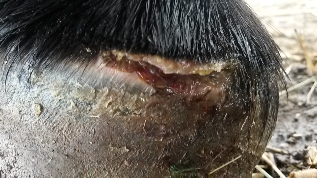 | Dire merci | Ca va cicatriser, puis descendre. Il faudra juste veiller à ce que ça reste propre, pour éviter un abcès ou fourmilière, jusqu'à ce que ça disparaisse. A voir une fois que ce sera bien formé si ton maréchal ne peut pas "boucher" tout ça pour être tranquille. Arrivé en bas du sabot, ça risque bien sûr de casser vu que ce sera fragile, donc bien sûr à surveiller aussi pour limiter la casse.**Tradition: le mien a ça sur un postérieur aussi, sûrement une ancienne lésion à la couronne qui restera toujours comme ça. En attendant jamais eu de soucis de ce côté là. |
