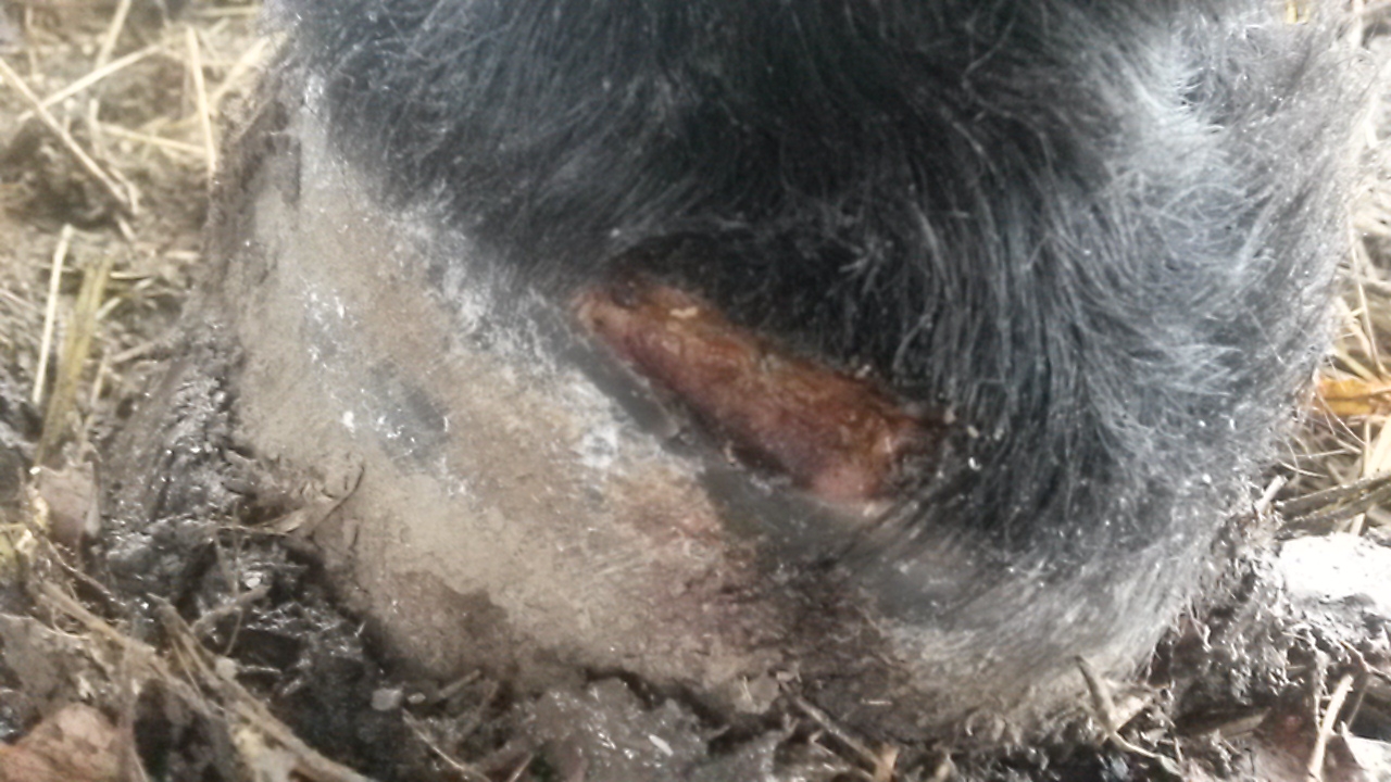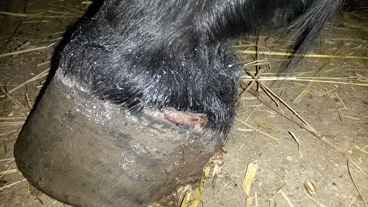 | Dire merci | Le mien a eu exactement le même type de blessure et j'ai cru à un abcès. Il s'est mis à boiter à patte cassée du jour au lendemain. J'ai fait venir un maréchal : c'était juste une atteinte mais très douloureuse. Soins en local (le spray aux plantes, mince j'ai mangé le nom) et la repousse du pied n'a posé aucun soucis. |