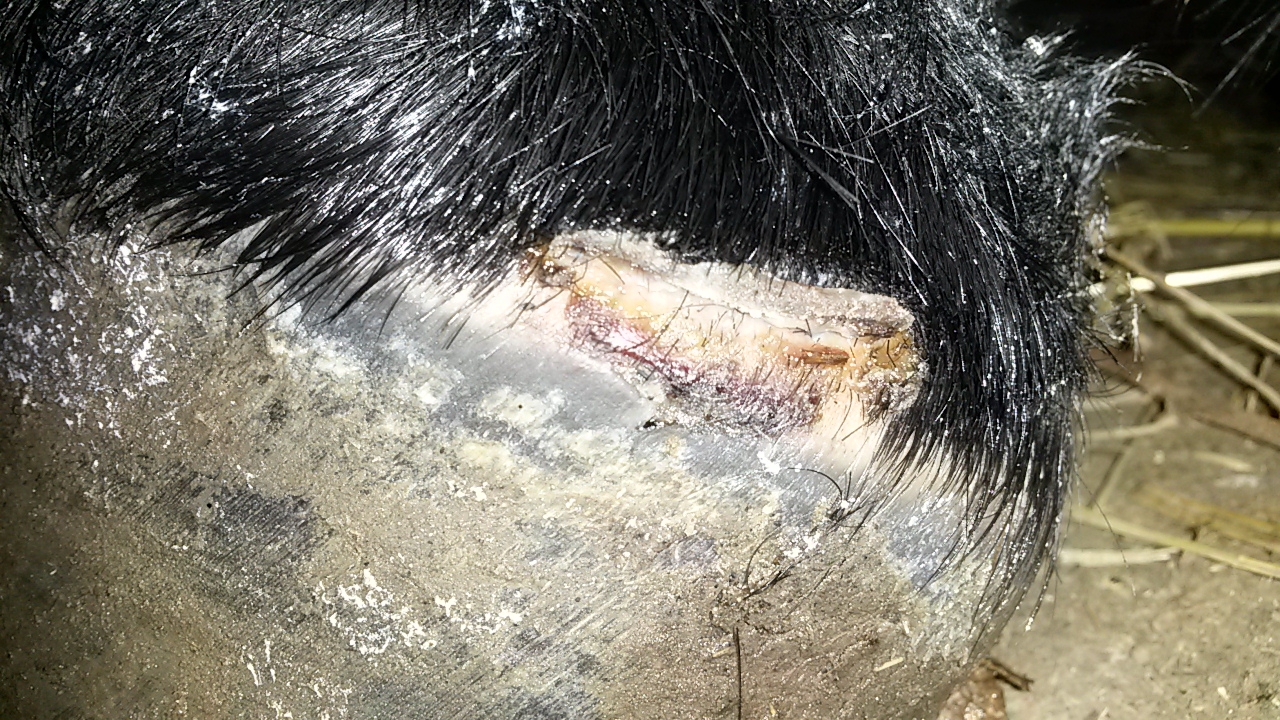| Dire merci | Le Pex non il n'ya pas de trou c'est egratigné c'est pour ca que ca m'etonne que ce soit un abcès. d'autant que mon cheval est chez moi et que je le vois 3 fois par jour. je regarde tout le temps ses pieds. je les cure presque tous les jours, donc s'il y'avait eu abcès je pense que je l'aurai vu quand meme. je vais laisser le pansement jusqu'à demain et si demain la plaie est jolie je laisse à l'air libre avec du miel. mais je sais pas si je coupe la peau au dessus je fais quoi ??? ![]() |