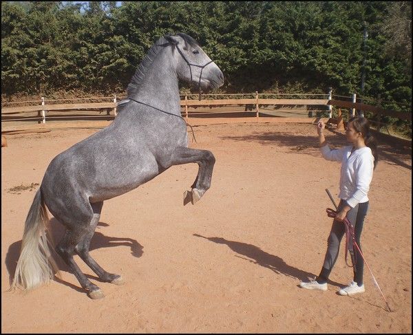 | Dire merci | haiko : il descendra au fur et a mesure si il est attiré par la carotte. Sinon fait le sans la carotte en lui prenant un antérieur tu lui demande le reculer ![]() |