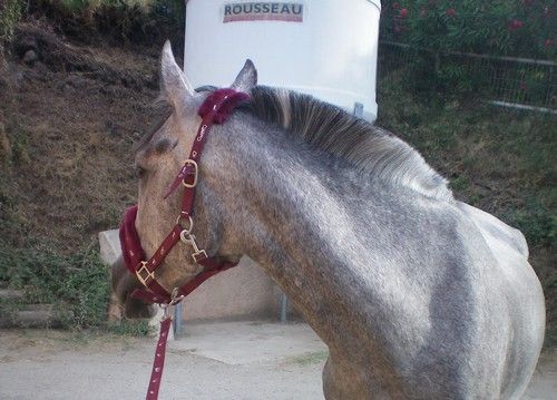 Tout se passe pour le mieux, aucun problème, aucuns stress... cet après midi je suis montée en cours avec 6 autres chevaux clubs (dont certains pas très sages), la miss n'en était pas perturbée du tout. Elle n'a peur de rien, tout ce qui est censé faire peur, elle va le voir, l'observer, le toucher du bout du nez, mais jamais de réactions violentes, pas de blocages ni rien. Son seul petit défaut c'est la patience, mais je travaille là dessus en ce moment.