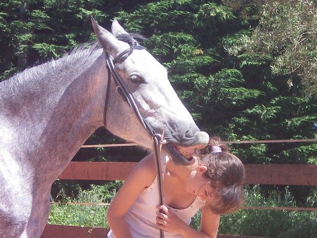 | Dire merci | Cet AM on va faire un peu de voltige ! Je mettrai des photos comme ça ça montrera où elle en est niveau "désensibilisation".... à savoir qu'au début elle tremblait quand je lui touchait les fesses en étant dessus ![]() |