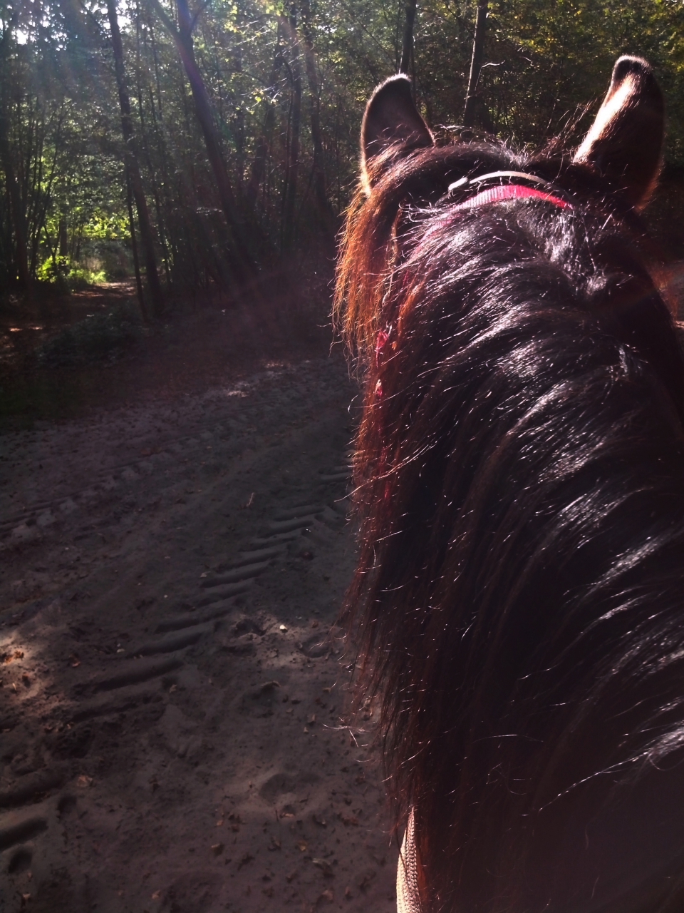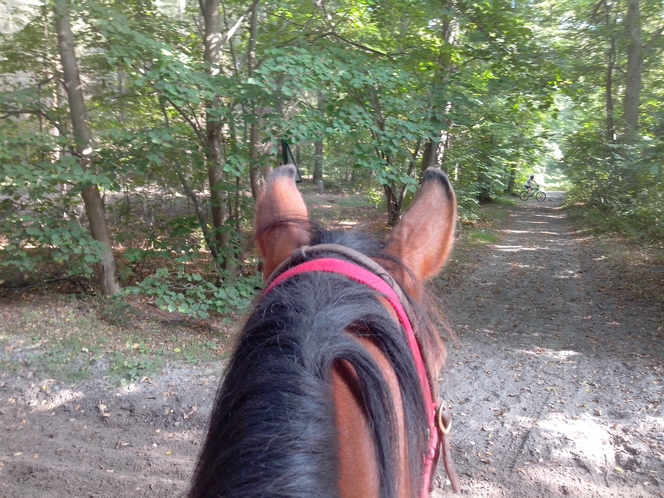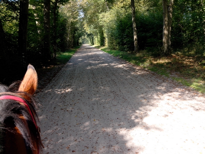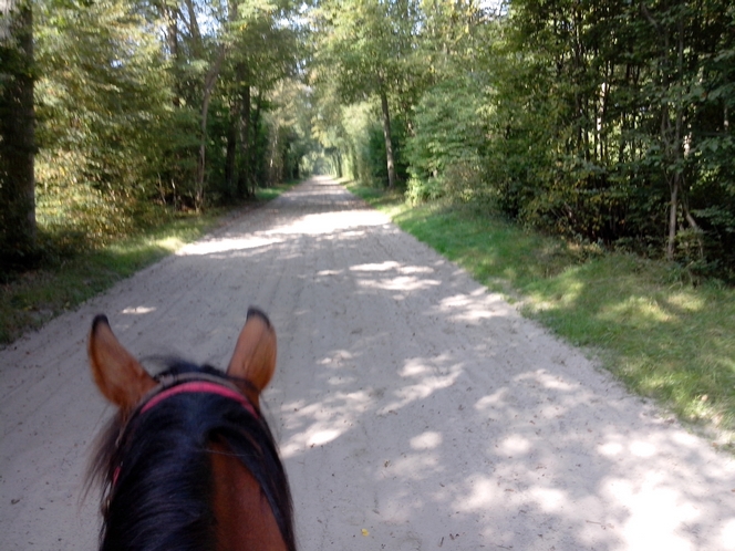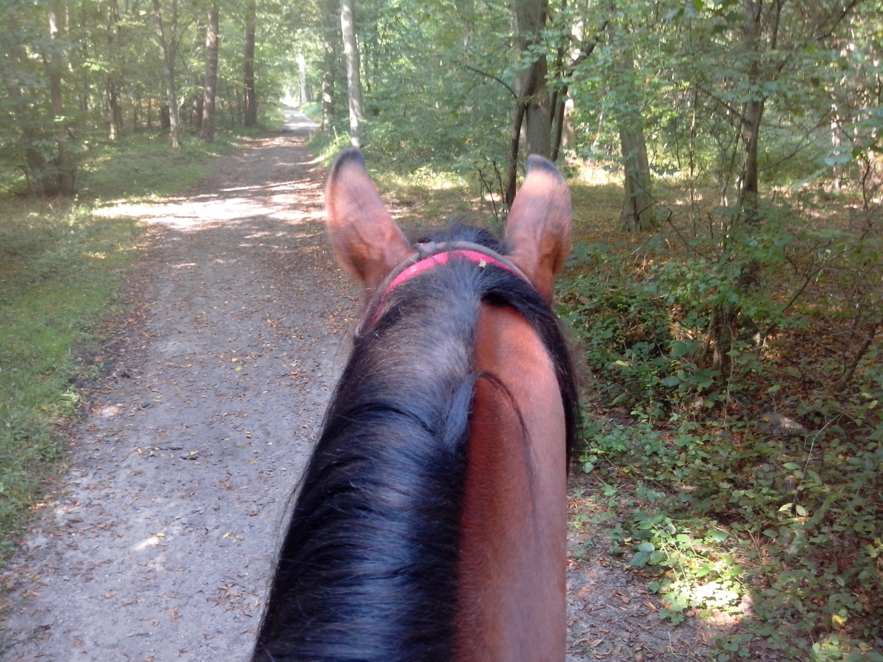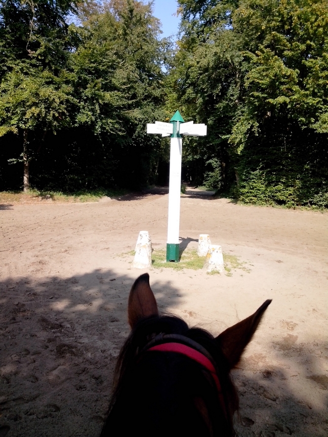 | Dire merci | Nouvelle sortie en foret afin de voir si Mr est moins neuneu. J'ai pas eu de soucis particulier. Il était content de sortir, peut-être même trop ! La foret de Chantilly, je pense que c'est un peu un Disneyland pour cavalier en faite. J'ai testé les pistes de galop aujourd'hui. C'est trop bien ! Tellement bien que je me suis faite gentiment embarqué et j'ai eu le droit à un coup de cul. Ça a dû lui rappeler la plage ! En faite, pour la première fois, j'ai pu bosser mon cheval au galop sur une grande ligne droite. C'était trop bien ! Mon terrain de jeu : ![]() Un velo donc un ennemi de Saphran ! ![]() ![]() ![]() Les panneaux de direction de la foret de Chantilly : ![]() ![]() J'en ai profité pour bosser l'arrêt car il prend quelques libertés sur le respect des allures. ![]() |