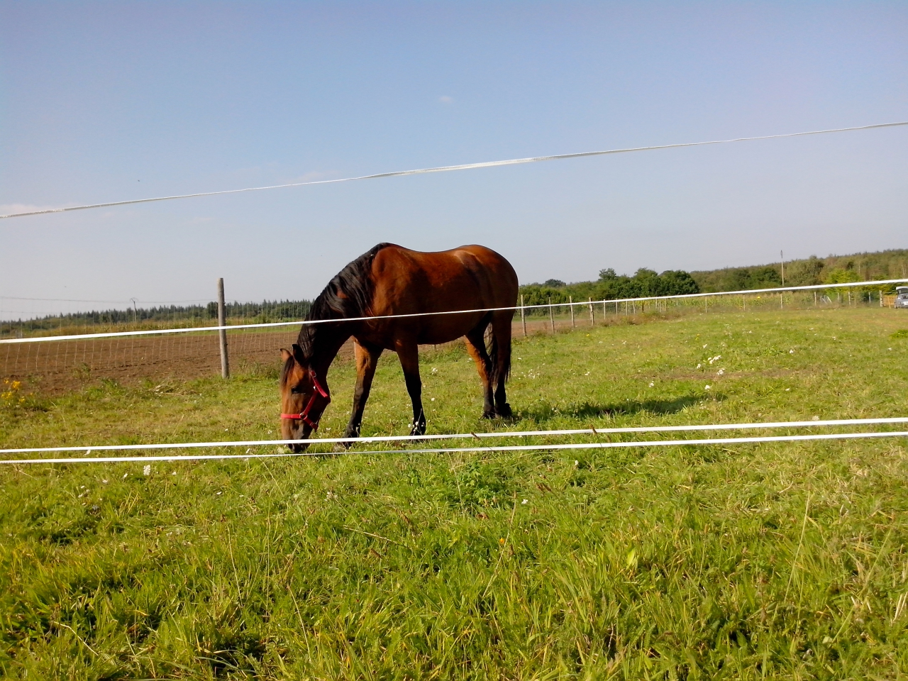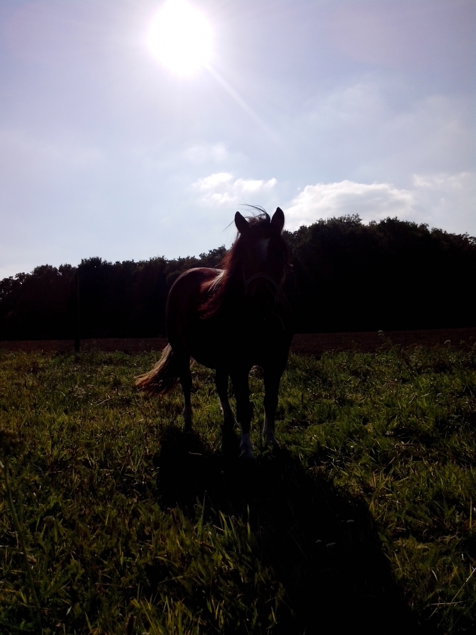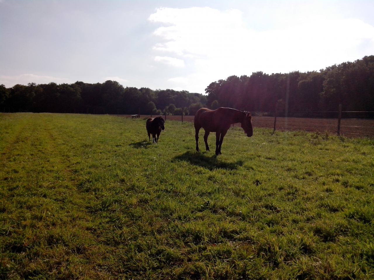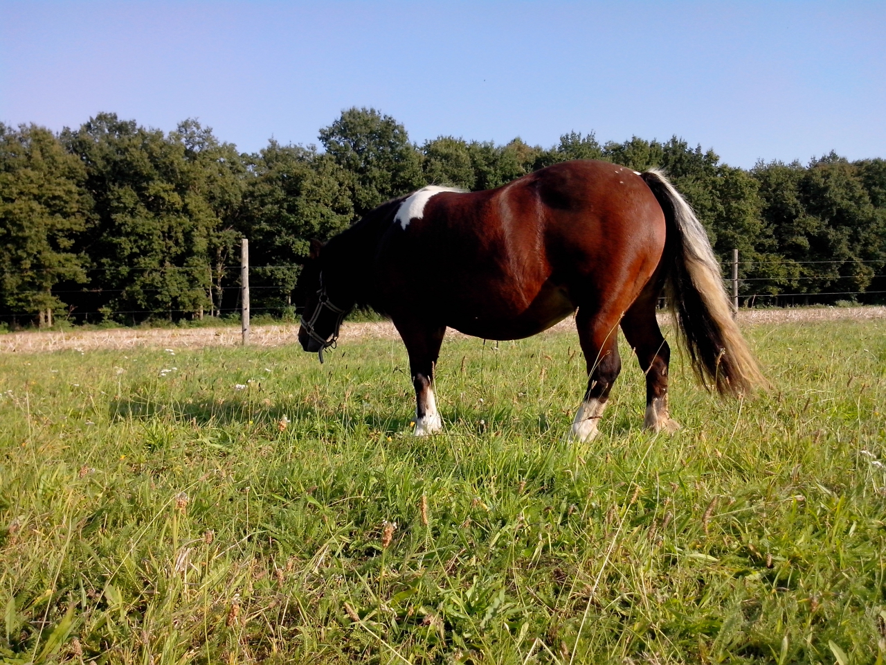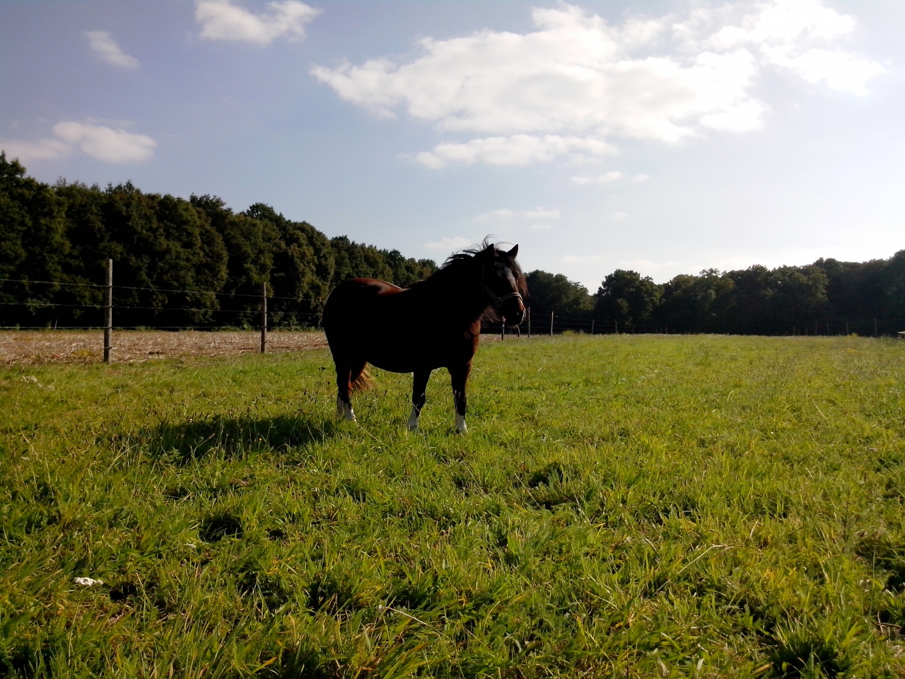 | Dire merci | C'est un vrai bonheur de les voir comme ça et de les avoir à quelques minutes de la maison. C'est vraiment un privilège. Que du bonheur. Je gagne du terrain avec Nouatine puisque ce matin, elle est venue me voir en premier au petit trot. Elle ne s'écarte pas quand je passe à coté d'elle. Et hier, petite promenade avec Saphran. Il faisait trop chaud ! Tellement chaud que j'ai écourté la balade car ça me tournait la tronche et je crevais de soif. |