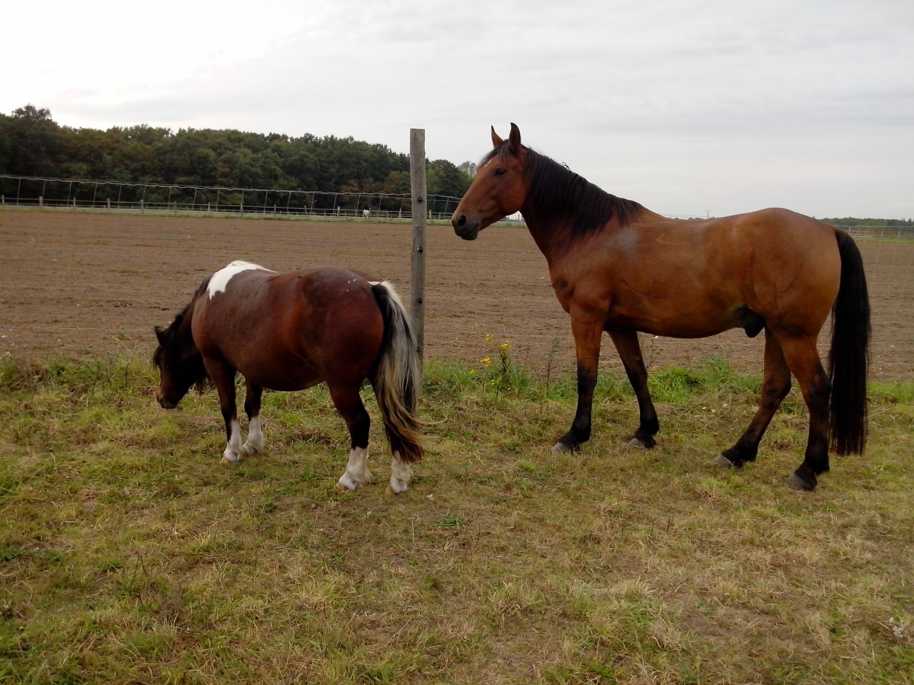 | Dire merci | el bimbo Et un escabeau aussi ! Parce-que les poteaux de 2m, il faut prendre un peu de hauteur pour les enfoncer. Si tu as possibilité, un manitou ou un tracteur avec fourche ou pelle qui enfonce les poteaux à ta place, c'est bien plus efficace et ça évite de défoncer la tête du poteau. Sinon, Dame Nougatine a viré son licol... Mais ce matin, c'était la première à venir me voir et elle a accepté de venir chercher la carotte dans ma main ! ![]() Et mon beau Saphran hier soir qui regarde sa copine s'énerver après les mouches. Surtout qu'elle est en chaleur. Je l'ai vu lui pisser au nez. Il a pas du tout apprécié et la miss a gagné un magistral coup de dent. ![]() ![]() L'abris est commandé ! ![]() |