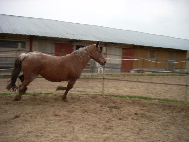 | Dire merci | Après avoir fait (encore) une excellente balade cet après midi, je me suis dit qu'il fallait que je partage ça avec les membres du forum. Donc je suis de Blois, ça fait 14 ans que je monte et 7 ans que j'ai ma bestiole. En parlant d'elle... Alors elle s'appelle Hermine, elle a 13 ans, c'est une quarter horse croisée appaloosa. Bonne grosse mèmère bien trapue, au début que je l'ai eu, elle était complètement folle, mais elle s'est assagie, avec l'age et le travail... Maintenant, c'est la complicité, et c'est le top. Niveau discplines, on a fait pas mal de choses : obstacle, un peu de cross, du western (où elle était pas mal, les gènes surement), de l'éthologie, des balades et du TREC. Maintenant, je ne fait plus que de la balades, j'ai arrêté l'obstacle car je pense qu'elle doit avoir mal au dos, ce qui ne m'empeche pas de sauter des troncs quand j'en trouve ![]() J'aimerai me mettre un peu plus sérieusement au TREC, car elle est extra en extérieur, mais faute de transport, c'est pas encore possible... On a connu quelques pensions dans le Loir-et-Cher, avant d'en trouver une sympa, près de Chambord, avec des superbes balades et des chemins partout. Bon assez de blabla je pense, on va passer aux photos ![]() La Hermine en question ![]() Message édité le 11/10/08 à 20:23 |