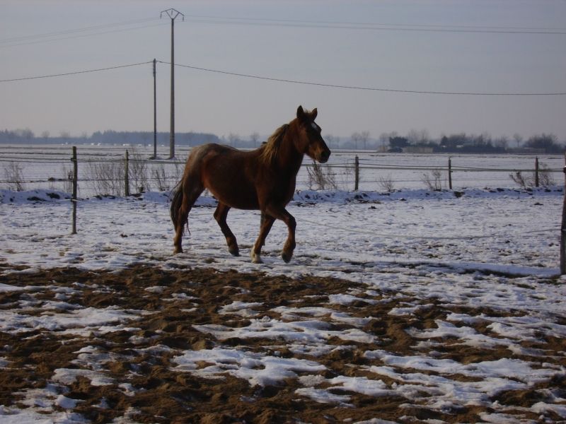 | Dire merci | comment elle se la joue! va falloir la mettre au dressage! en tous cas ça devient galère la neige.. au début c'était drôle mais là ça fait plus d'une semaine que notre carrière est inutilisable, les chevaux se la coulent douce!! |