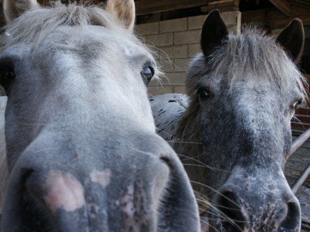 | Dire merci | Voici enfin en exclusivité mes vieux loulous en retraite chez moi. Je me centre sur mes miens, ou ceux dont les proprios sont d'accord ![]() ![]() Ouistiti de Beuvry, 28 ans, le doyen, retraité de club à 16 ans. C'est un croisé Anglo-Arabe x Cheval de selle qui a du trotteur... Ah oui, et sa position d'encolure est normale ^^' ![]() Radja, Ango-Arabe, beau gosse hautain et blasé. Il a 25 ans, a été mis à la retraite à 22. il pète le feu...même s'il a l'air super blasé là ! ![]() Neigeoux, le sale délinquant. Poney OI mis à la retraite à 16 ans : trop fort pour les enfants, trop petit pour les grands, il bouffait les doigts des parents.... Un sale môme quoi ! Il a entre 23 et 24 ans maintenant ![]() Aggripine, la jument Orange, qui n'est pas à moi mais qui est la fiancée attitre de Radja. Elle a 20 ans, c'est une claquette à touquette, mais je l'aime bien quand même ^^ ![]() ![]() Ouistiti avec Missouri, sa chérie, décédée cet été à l'âge de trente ans ![]() ![]() Les trois poneys. Tous trois retraités de club. Neigeoux, à gauche, couché. Debout, c'est Brigand (19 ans) un poney tout à fait adorable et gentil comme pas deux et à droite, couché, Vicq, 25 ou 26 ans... au tempérament bien trempé ! Ah oui, et devant, c'est Miss, mon Husky ^^ qui veille toujours au grain. ![]() Neigeoux et Vicq. Précisons que ces sales gosses aiment torturer Brigand à leurs heures perdues. Mais bon, ils sont adorables ^^' |