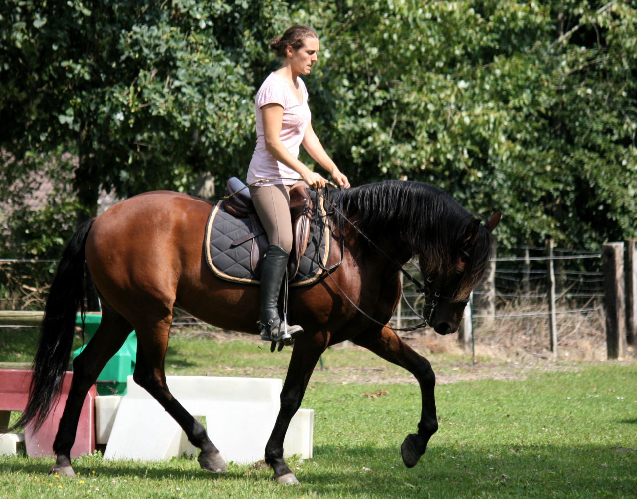 | Dire merci | ![]() Purée je e paye toujours une de ces têtes !! ![]() Sessions ![]() Nous commençons à travailler le rassembler pour atteindre piaffer et passage Des moments courts mais appliqués ![]() ![]() Et puis jambette acquise montée donc nous pensons à travailler sérieusement le pas espagnol ![]() ![]() Il s'énerve pas mal, se demande ce qu'il faut faire ![]() ![]() On travaille aussi les changements de pied au galop mais comme c'est duuuuuuuuur ^^Il m'en a donné un mais n'a pas assez de travail derrière lui pour me l'offrir correctement. ![]() Voilà ![]() |