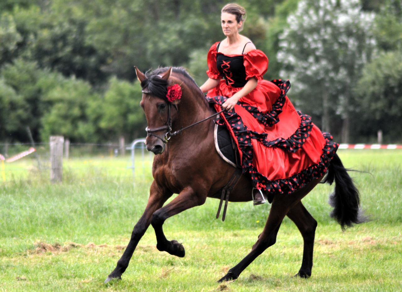 | Dire merci | Ya le smile sur la 4eme C'est très crispé effectivement M'en fou, un couple est venu me voir en me disant que c'était magnifique ! Le cheval, la robe, la musique, le sourire ! C'est que les photos n'ont pas été prises au bon moment loool |