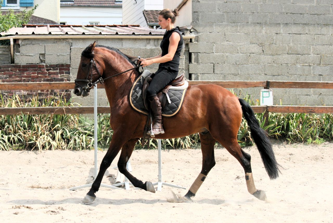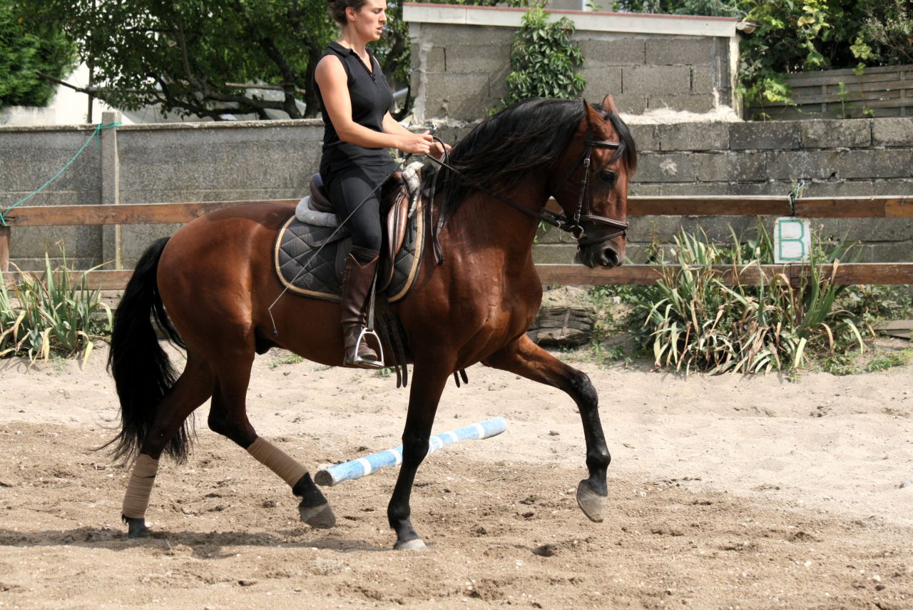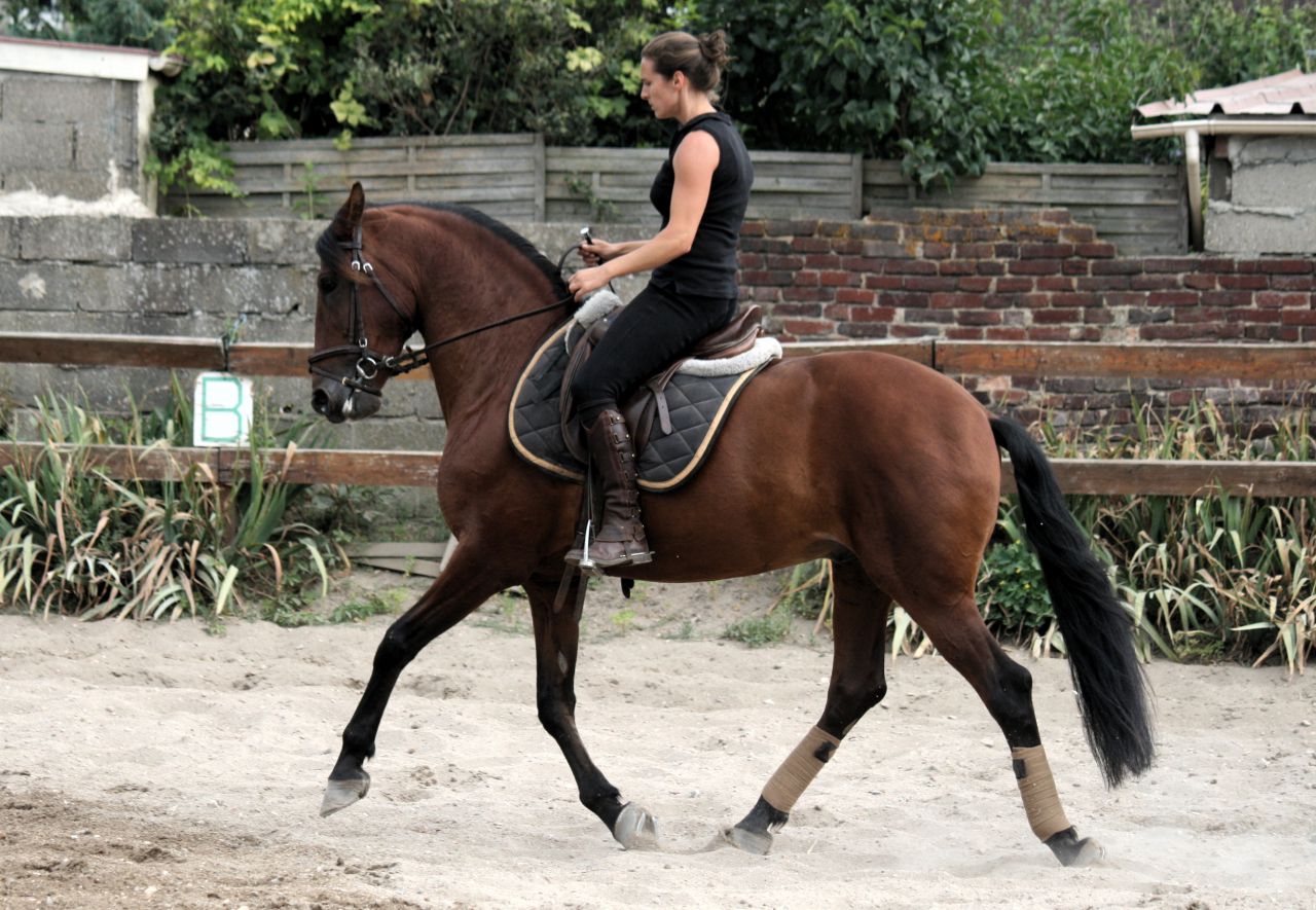 | Dire merci | Merci merci marionette bientôt tu verras ça en vraaiiiiii Aujourd'hui encore une super séance il m'épate !Plein de photos et qq vidéos si j'ai le courage car la valise n'est pas encore faite et je pars tôt demain ![]() Pour illustrer: oui je fais encore le tronche ![]() Il est encore un peu loin dans ses jarrets, du mal à se rassembler mais il a bien compris le levé de l'avant main |