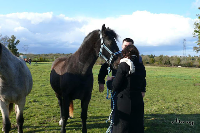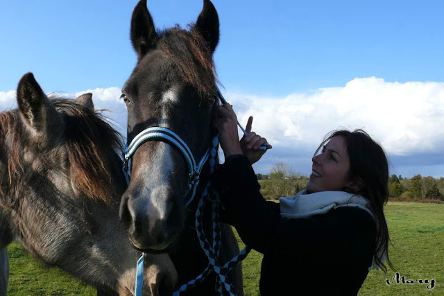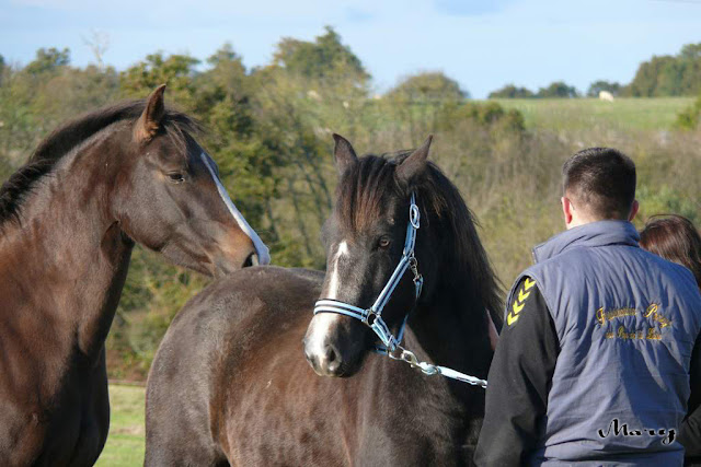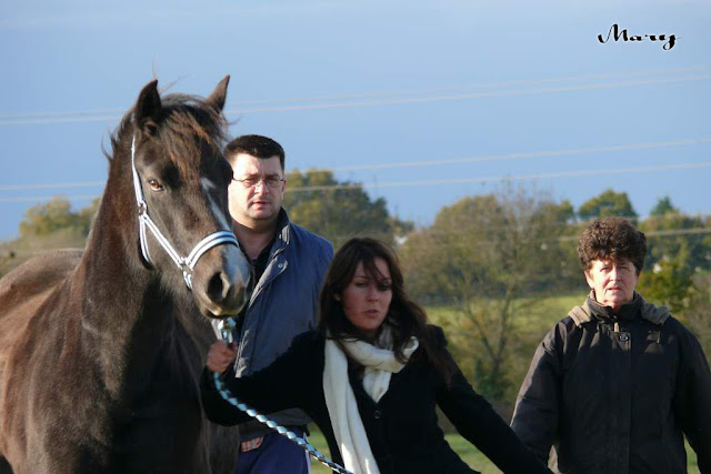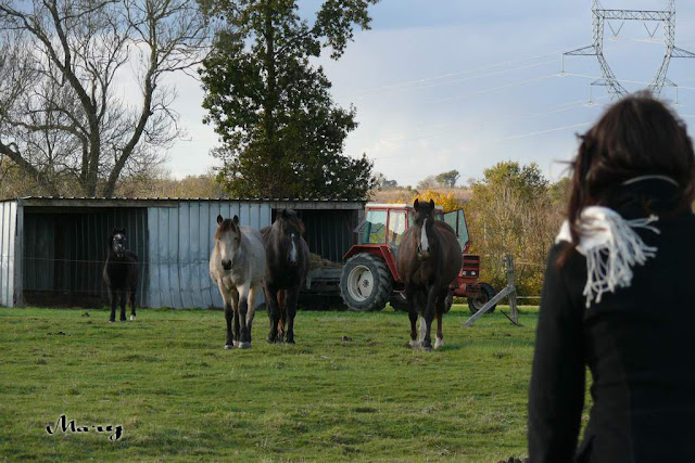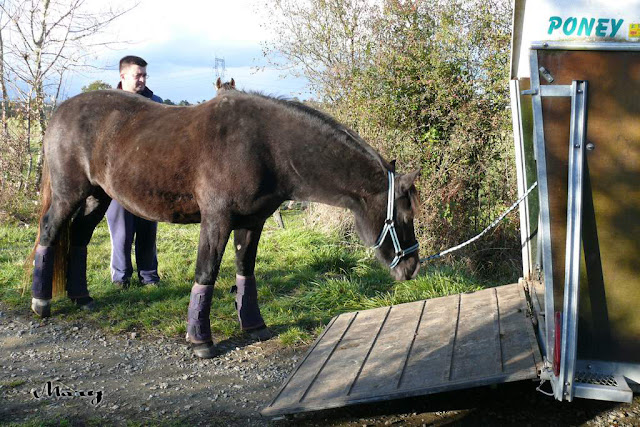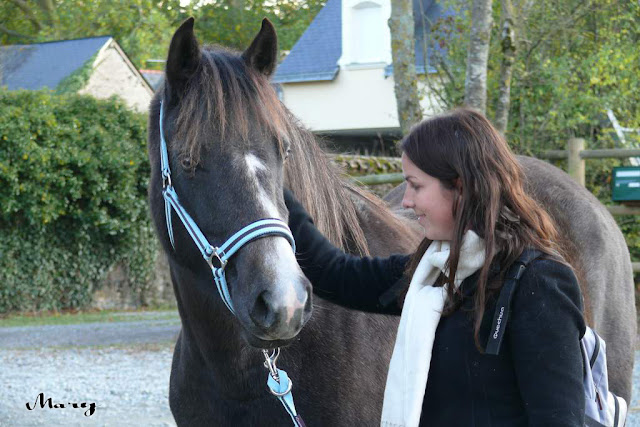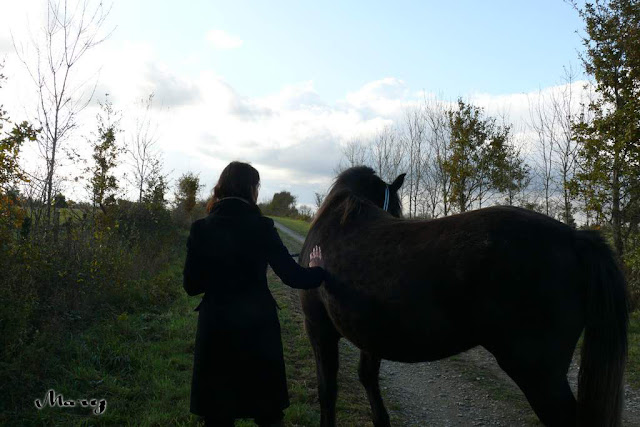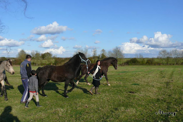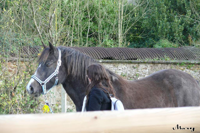 | Dire merci | Arrivée à la pension, elle est descendue du Van avec les filles, a priori pas de soucis... Quelques hennissements vu que tous les poneys galopaient dans les prés pour voir l'arrivée de la nouvelle On l'a alors emmenée dans un paddock où l'attendait Volpi, un magnifique retraité qui doit l'aider à intégrer le troupeau... Là encore, zéro souci.... Ils se sont sentis, elle n'a eu aucune réaction (même pas un petit cri de pisseusse !!) et elle s'est tranquillement mise à brouter... La pauvre 3h hors de son pré, elle était en manque d'herbe Moralité : JE SUIS PROPRIÉTAIRE OFFICIELLEMENT DE SHAANXI !!! Et j'en suis ravie, l'aventure commence est ça va être géniale. Le peu qu'elle m'a montré d'elle dévoile une ponette avec un vrai bon mental, confiante et qui semble comprendre vite. Et puis, elle a des yeux |