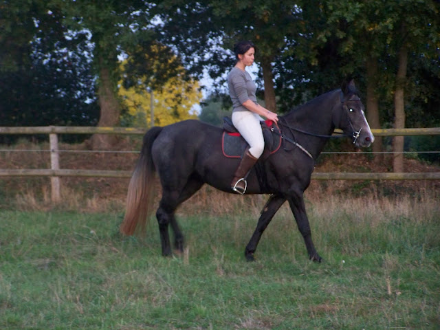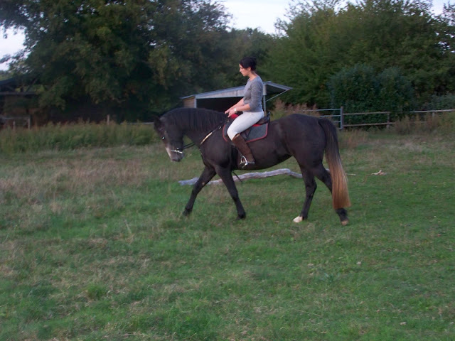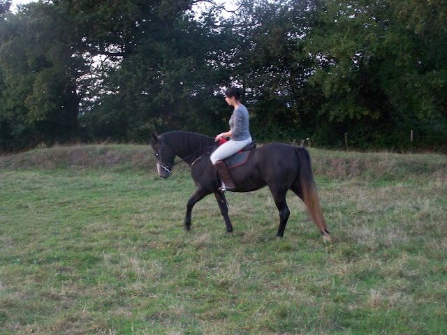| Dire merci | Je remonte car elle est trop jolie Hier elle a sauté en liberté dans le manège... J'ai tenté de lui mettre une petite barre d'appel une foulée avant l'obstacle pour qu'elle se cale mais c'était pas folichon !! Par contre, elle y va tranquille !! Et puis montée à crue en licol ensuite... Au pas, au trot, des voltes etc ... sans pb... Une crème comme toujours... Et là, c'est la déprime, fini l'été... Va falloir remettre le surpantalon de k-way qui plait tant à Pilous49 !!!!!!!!! |