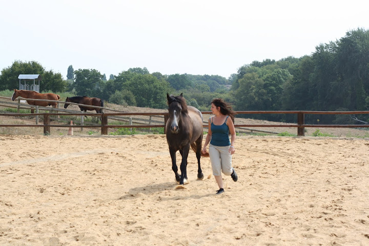 | Dire merci | c'est une idée ou elle répond déjà bien à la jambe isolée? T'as fait comment pour lui apprendre ça si vite, J'ai travaillé à pieds en utilisant la méthode des "pressions", celle qui correspond au jeu de Parelli "porc-épic" Jeu du porc-épic : Par la pression physique (mains, doigts, bout du stick, etc.), le cheval doit céder et se déplacer. Ce jeu améliore la réponse aux aides du cavalier une fois en selle, et atténue petit à petit le réflexe inné d'opposition. En fait, une fois le principe "acquis" à pieds, à cheval, ça se fait tout seul... Car ce n'est que la deuxième séance que je lui demande de déplacer les hanches réellement et les épaules. Elle fait comme ma S, le culcul est plus haut que le reste, ça se voit Je pense surtout qu'elle est longue du dos car non sellée, le garot est au dessus des fesses, pas de doute. elle est meme assez fine ... Oui c'est vrai, quand on regarde le ventre, elle fait un peu "lévrier". Mais je pense qu'elle pourrait avoir quelques kilos en plus... Là y'a vraiment plus d'herbe, elle n'est qu'au foin à volonté. Je lui donne quand même une ration quand je la monte. Mais je pense que l'on va repasser à une ration par jour. |