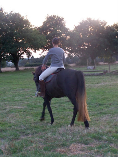 | Dire merci | Et sinon faut absolument que je change de selle... là, c'est vraiment trop dur... Et j'avais oublié que j'ai des étriers taille enfant... Magnum avait du mal à rentrer ses pieds dedans |