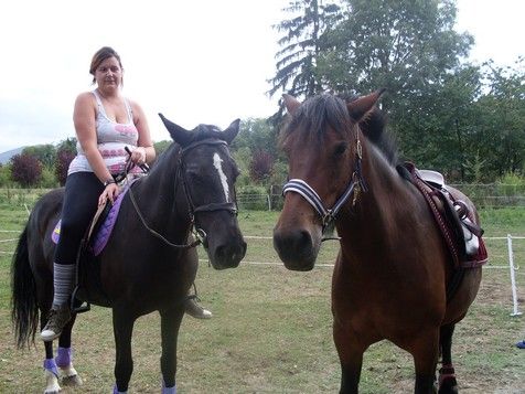 | Dire merci | mais c parce que je suis gateuse, toutes les excuses sont bonnes pour les gater ![]() Ben je fais que du loisir : ballades évidemment mais aussi un peu de saut (à son niveau ), on travaille pas mal sur le plat pour lui faire un bon petit dos... et sinon c'est jeux, travail en liberté, monte a cru avec une ptite longe autour du cou, et des ptits exercices pour nous amuser...Rien de bien transcendant Par contre je l'ai dressée à travailler à la voix montée : arrêt, marche au pas, trotte, galope, recule, hanches... et c tout |