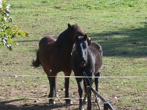 | Dire merci | La confrontation : Le 28 aout 2008 donc (le lendemain meme de l'arrivée d'Augustine) J'ai laché Augustine et j'ai emmené Nana en longe jusqu'à elle, pour éviter qu'elle lui saute dessus de joie et qu'elle prenne un shoot "Hm mais t'es qui toua ??? " ![]() Même pas perturbée par la morue qui lui renifle les fesses la mamie ![]() Finalement copine-copine ? En tout cas on se tolère ![]() ![]() Niaouli qui regarde sa nouvelle compagne et elle est trop fan !!![]() "Tu m'as ramené une mamie ?? trop biennnnn !!!!!!" ![]() " Coucou !!! "![]() Augustine laisse même rentrer Niaouli dans le boxe avec elle dès le premier jour (pour une jument anti-sociale )![]() |