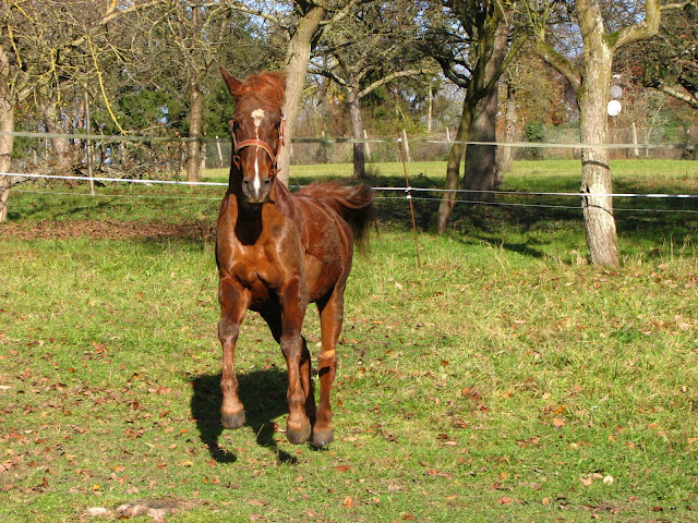 | Dire merci | oui, je l'affirme haut et forme, Nadja est une crétine crétine parce que je me suis faite suer à faire faire un superbe licol en cuir pour ma soeur pour son anniversaire, le briquer exprès pour CETTE séance photos... je la lache au paddock, dans l'espoir de prendre une jolie photo avec le magnifique soleil que ce mois de novembre a bien voulu nous offrir... et voila ce qu'elle me fait une seule syllabe m'est venue à l'esprit: aaaaaaaaaaaaaaaaaaaaaaaaaaaaaaaaaaaa bon, ben tant pis, le licol sera offert avec qq taches de boue, et on va continuer la séance photos, hein... elle a bien changé n'est ce pas? petite pointe de galop ma photo préférée et enfin, la seule photo potable qui me permettra d'offrir ce licol à ma soeur par procuration ![]() (au passage, que pensez-vous du licol? ) |