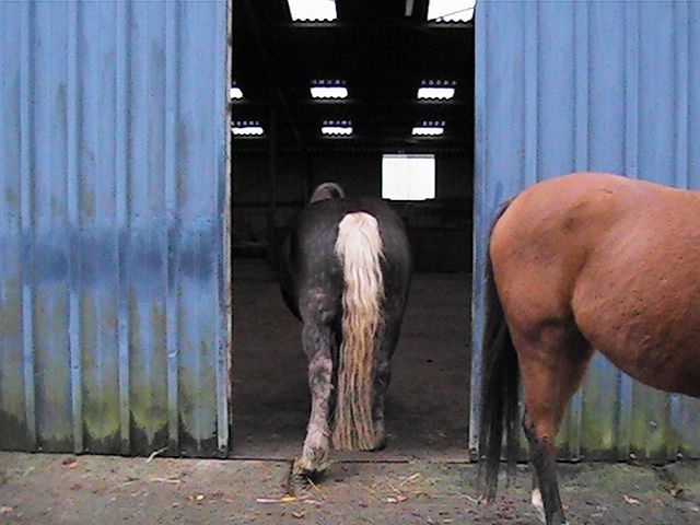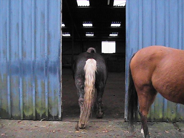| Dire merci | Merci tout le monde, moi aussi je la trouve superbe évidement! , évidement, pas superbe comme un top modèle, mais je la trouve trognonne, comme une petite patate douce!![]() Je l'ai monté ce matin, elle avait du jus , elle a repéré un moment un tracteur, là bas, au loin dans un champ qui brillait sous le soleil (oui ce matin il y en a eu pendant 1 heure ou 2 ), elle se demandait ce que s'était et voulait trotter (pour le rejoindre ), enfin m'emmener au trot plutot...je l'ai retenu, mais c'était moin une...J'essai de la caller au petit trot, c'est pas facile.... Bon, quelques autres photos d'aujourd'hui: "oh, je vois plus rien" ![]() "ah, c'est mieux...de toutes façons, ca m'empeche pas de manger" ![]() "et oui je mange encore" ![]() "comme l'hiver dernier, j'aime m'abimer toute la crinière en me grattant partout dans le hangar, c'est vachement marrant, contrairement à ce que pense maman, donc vous voyez le massacre, presque à la tronconeuse "![]() "je vais vous montrer où j'aime me gratter, vous voyez ce passage par exemple ? Et ben je m'y gratte très bien......admirez mes fesses dodelinantes au passage!" ![]() ![]() "attention je refais un passage..." ![]() "pose" ![]() "non, je ne suis pas une star....j'ai du mal à convaincre mon pote en tous les cas....il me faudrait un pass VIP pour accéder au foin des fois" ![]() |