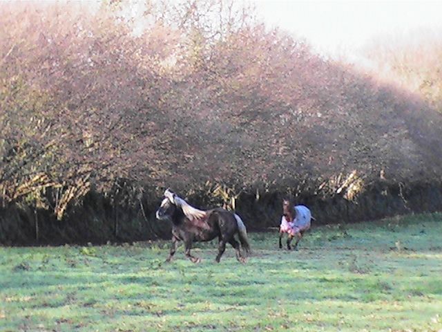| Dire merci | Ruby et Westh au pré aujourd'hui : Ruby est un contre jour à elle seule : ![]() ![]() Comment ça, on comprend l'utilité de la couverture sur cette photo ? ![]() Westh apprend à Ruby que ce n'est toujours pas permis de la doubler d'abord!: ![]() ok! ![]() Westh paufine son cabré avec Ruby (dommage, Ruby venait de cabrer et j'étais trop loin )![]() Après, il lui apprend à avancer devant lui : ![]() ![]() ![]() "bouge ton boule" ![]() ![]() |