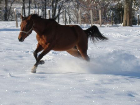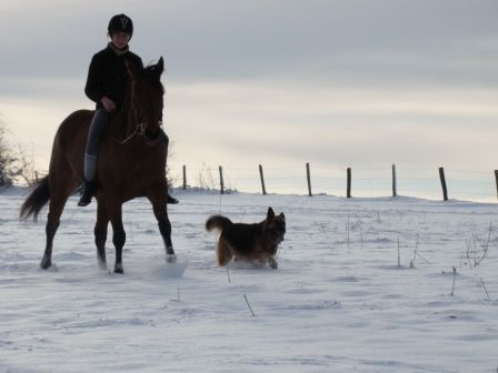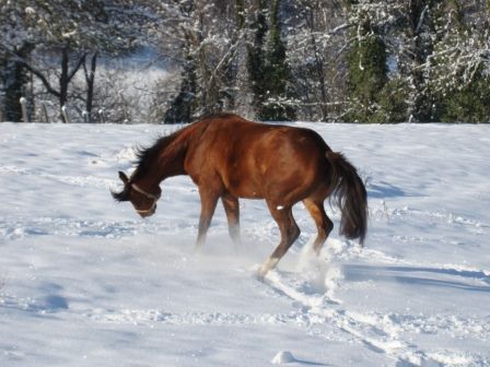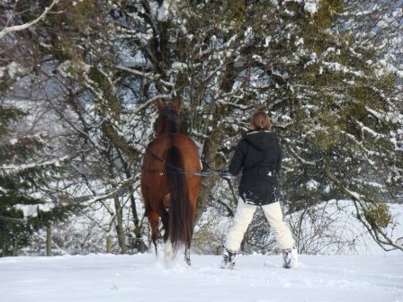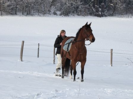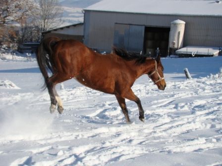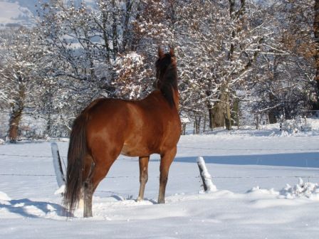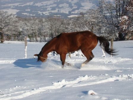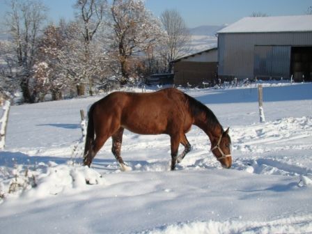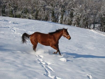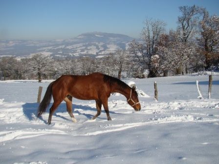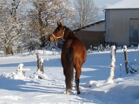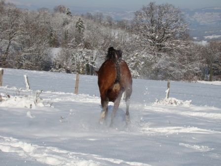 | Dire merci | Super sympa les photos Toute cette neige, wahou !!Ta jument est tjrs aussi jolie, j'adore sa morpho!!! |